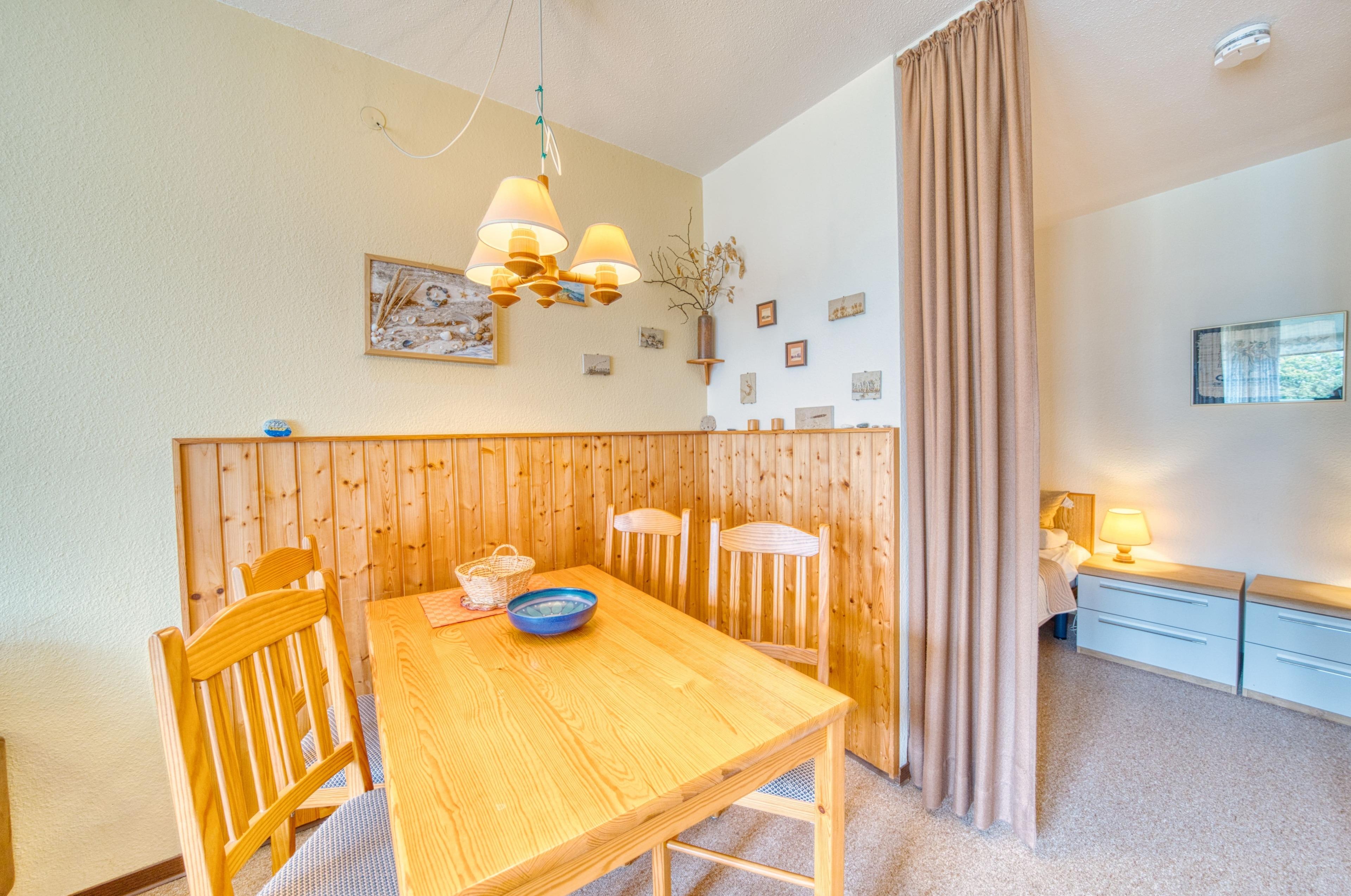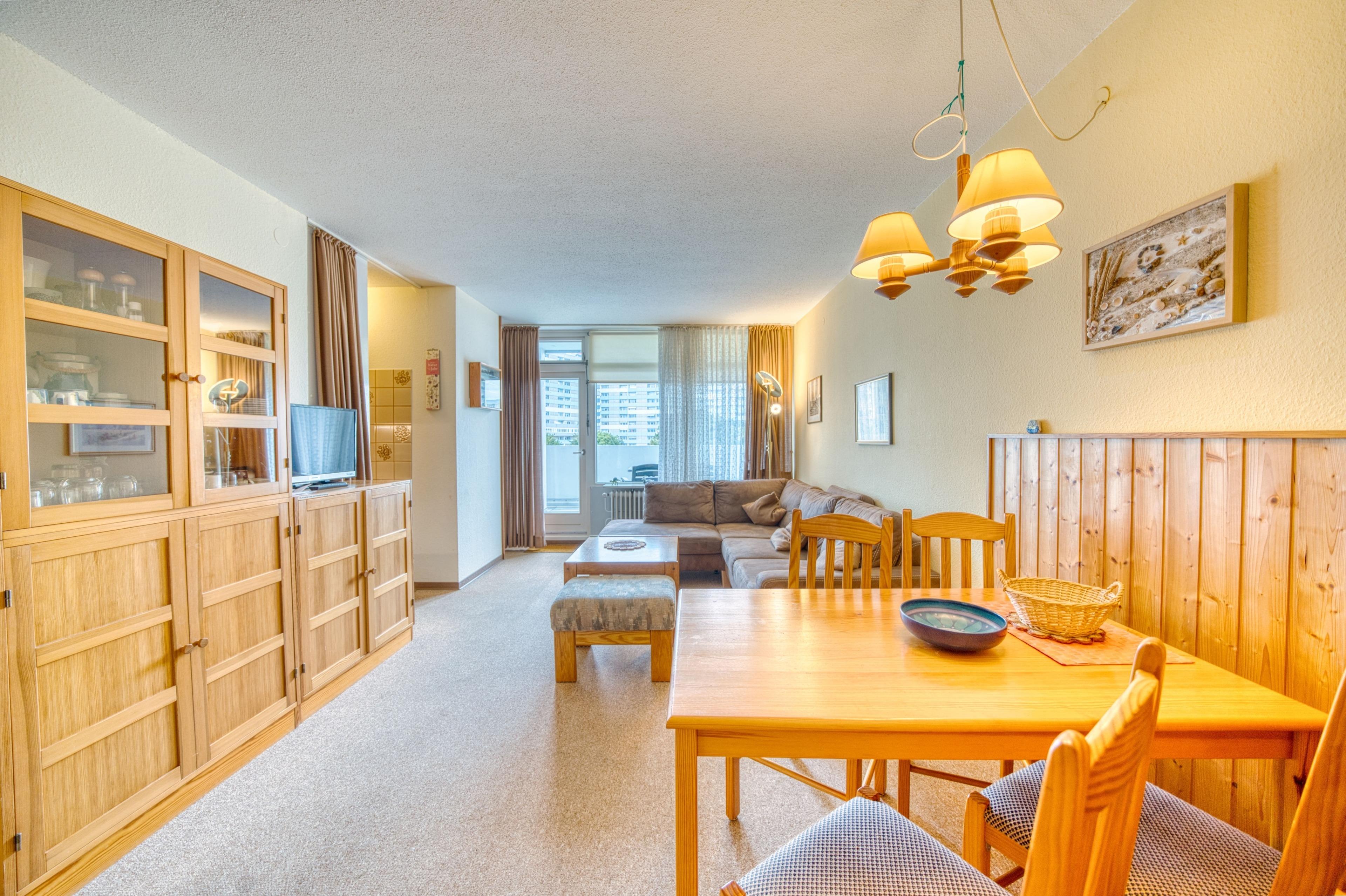 Die Wohnung liegt im Haus O im Ferienpark in der 3. Etage, mit großem Balkon zum Innenhof, der einen schönen Blick auf die Grünanlagen bietet.