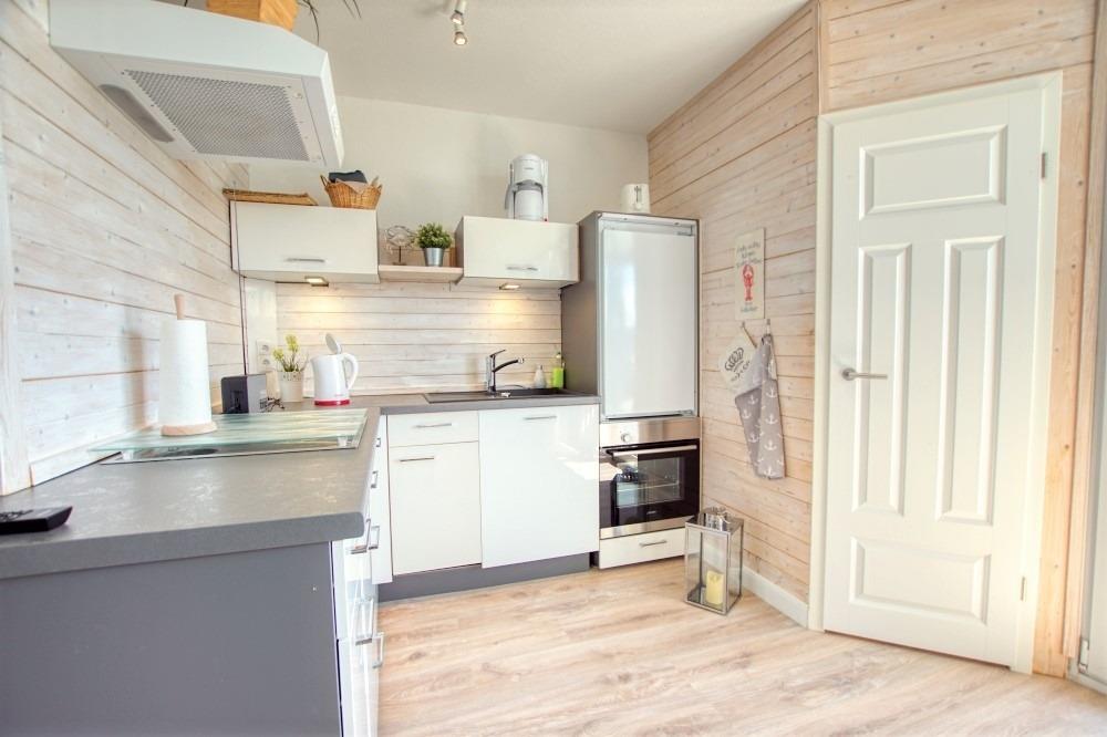 Voll ausgestattete Küche mit Geschirrspüler, Backofen, Kühlschrank und 4-Platten-Ceranfeld