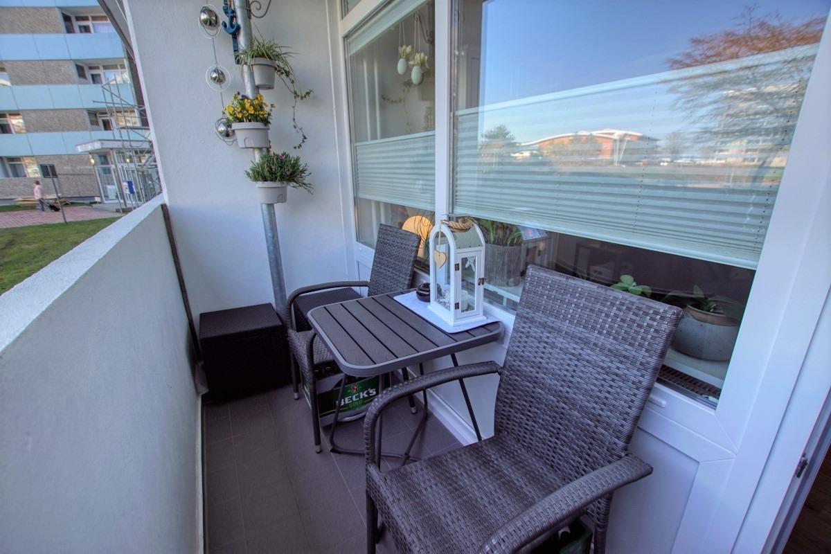 Diese gemütliche Erdgeschosswohnung im Haus O bietet auf 45 m² Platz für bis zu 2 Personen und überzeugt mit einer ruhigen Lage sowie einem schönen Blick in den begrünten Innenhof. Der Balkon zur Nordseite lädt zu entspannten Stunden im Freien ein.