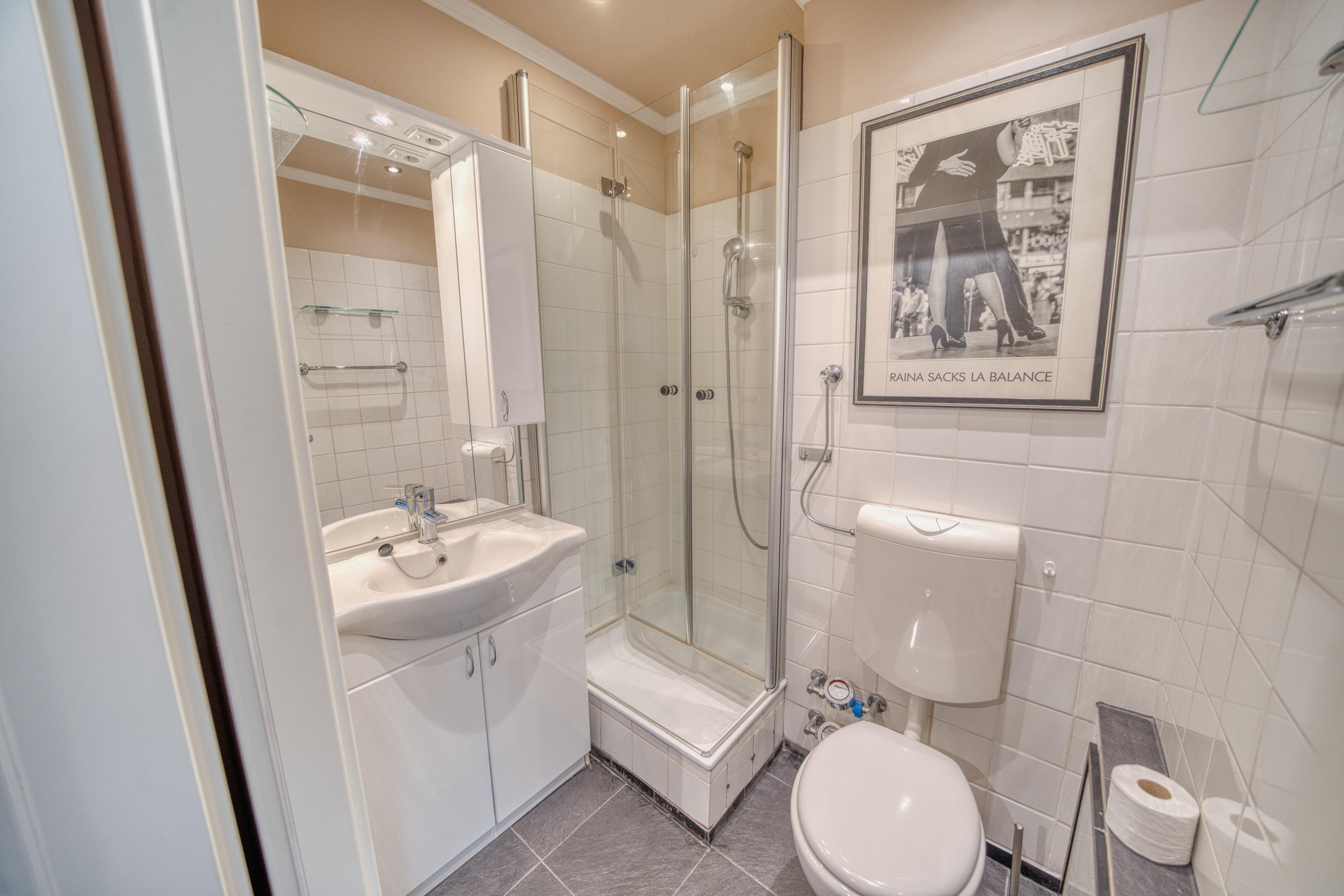 Bad mit WC und Duschkabine