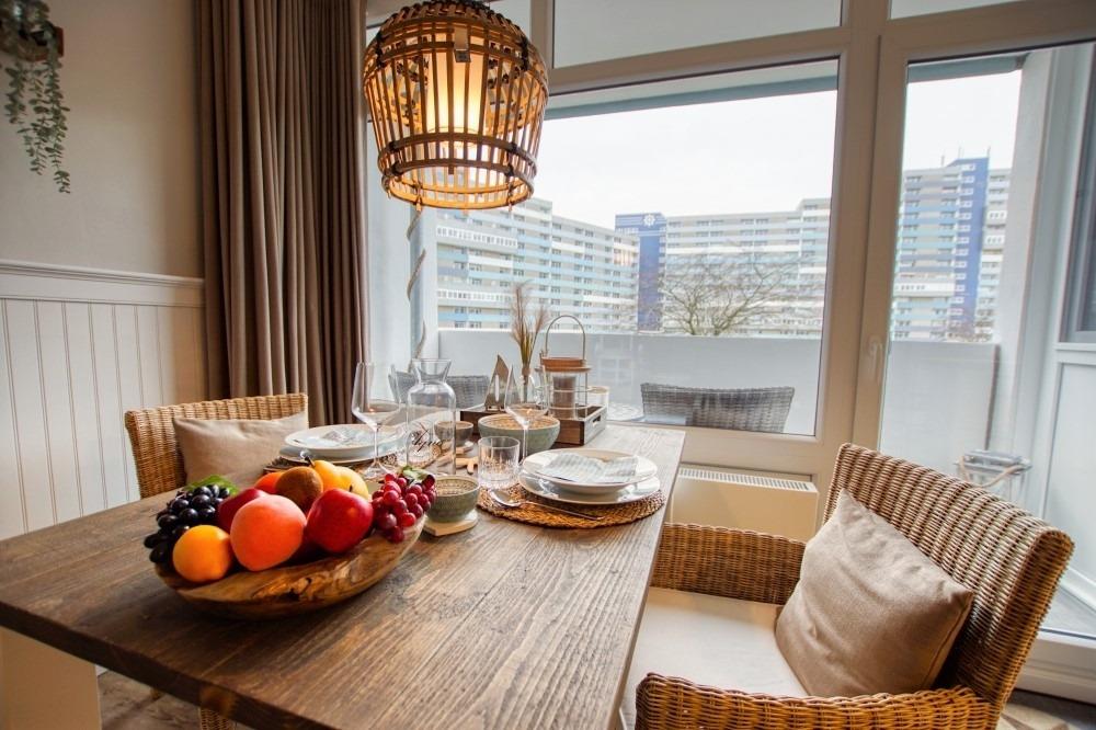 Willkommen in Ihrer lässig eingerichteten Ferienwohnung im Haus Q des Ferienparks Heiligenhafen. Auf 45?m² Wohnfläche genießen 2 Personen modernen Komfort im maritimen Beachstyle. Der ruhige Balkon mit Blick auf den grünen Innenhof sorgt für entspannte Urlaubsstunden in stilvollem Ambiente.