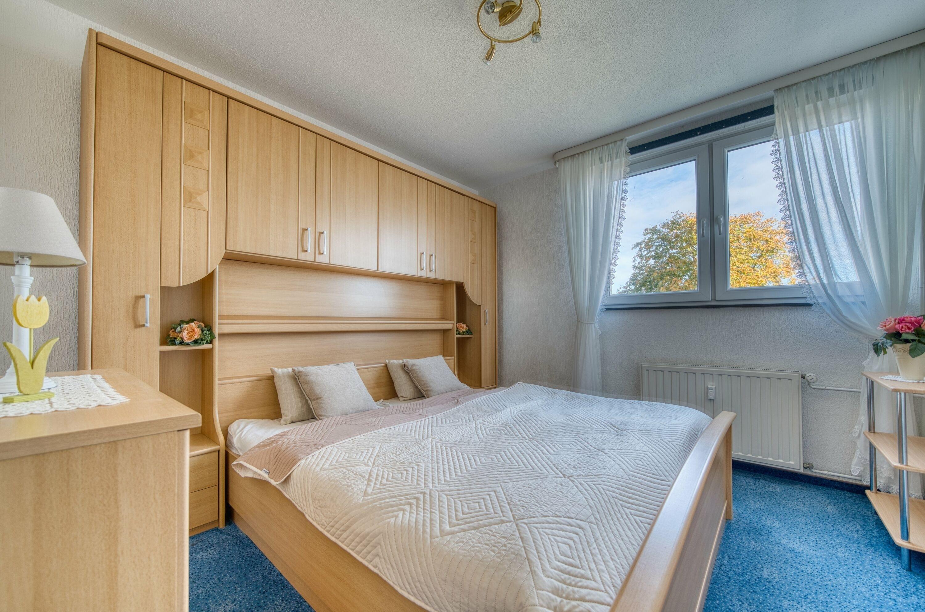 Die Ferienwohnung verfügt über zwei separate Schlafzimmer, jeweils mit Fenster – perfekt für einen erholsamen Schlaf und ausreichend Privatsphäre. Das großzügige Wohnzimmer mit angeschlossener voll ausgestatteter Küche schafft ein offenes, freundliches Raumgefühl.