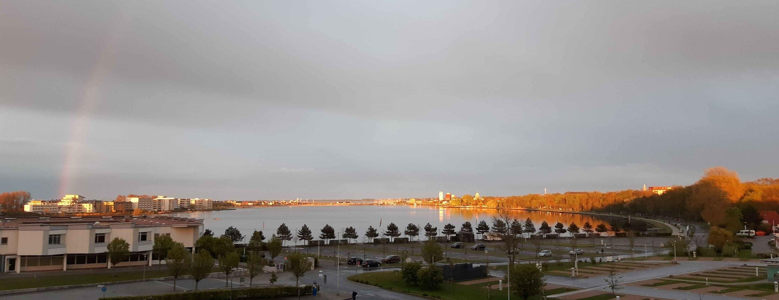 Die Wohnung liegt im Haus Q des Ferienparks, in der 4. Etage mit Balkon zur Ostseite, der einen schönen Blick auf den Binnensee bis hin zur Fehmarn-Sund-Brücke bietet. Bringen Sie Ihr Fernglas mit. Es gibt immer etwas zu entdecken. Der Tag beginnt mit Sonne beim Frühstück und endet mit dem Blick auf den nächtlich bunt illuminierten Binnensee.