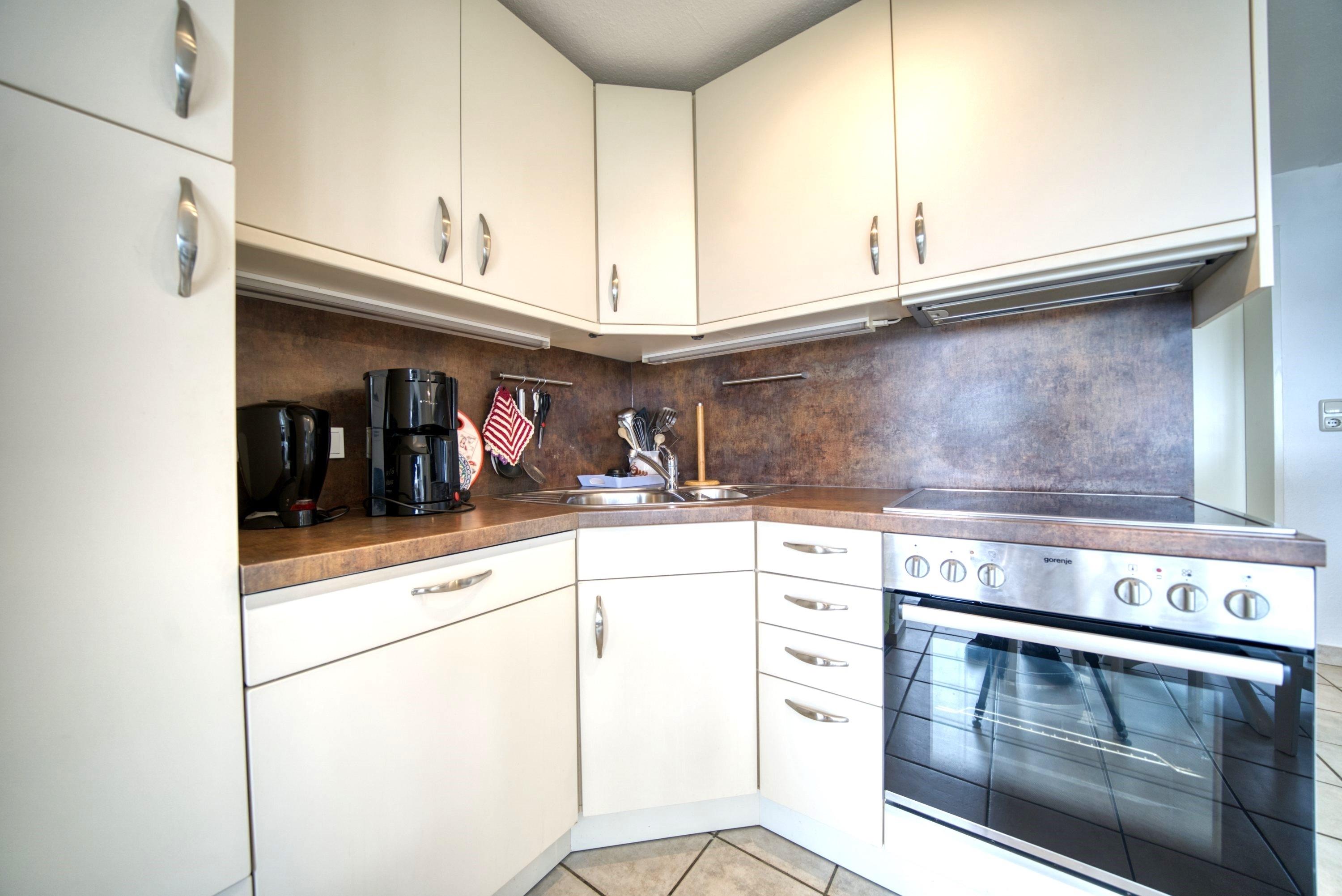 Küche: Gut ausgestattet mit großem Kühlschrank, Geschirrspüler, Ceranfeld, Kaffeemaschine, Wasserkocher
