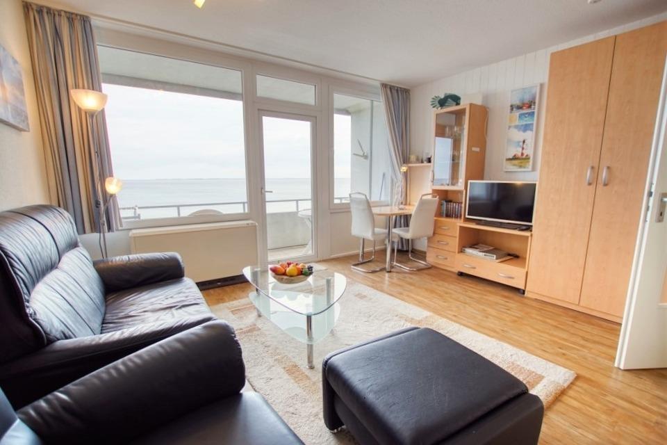 Erleben Sie einen entspannten Ostseeurlaub in dieser komfortablen Ferienwohnung mit traumhaftem Meerblick und Top-Lage in Heiligenhafen.