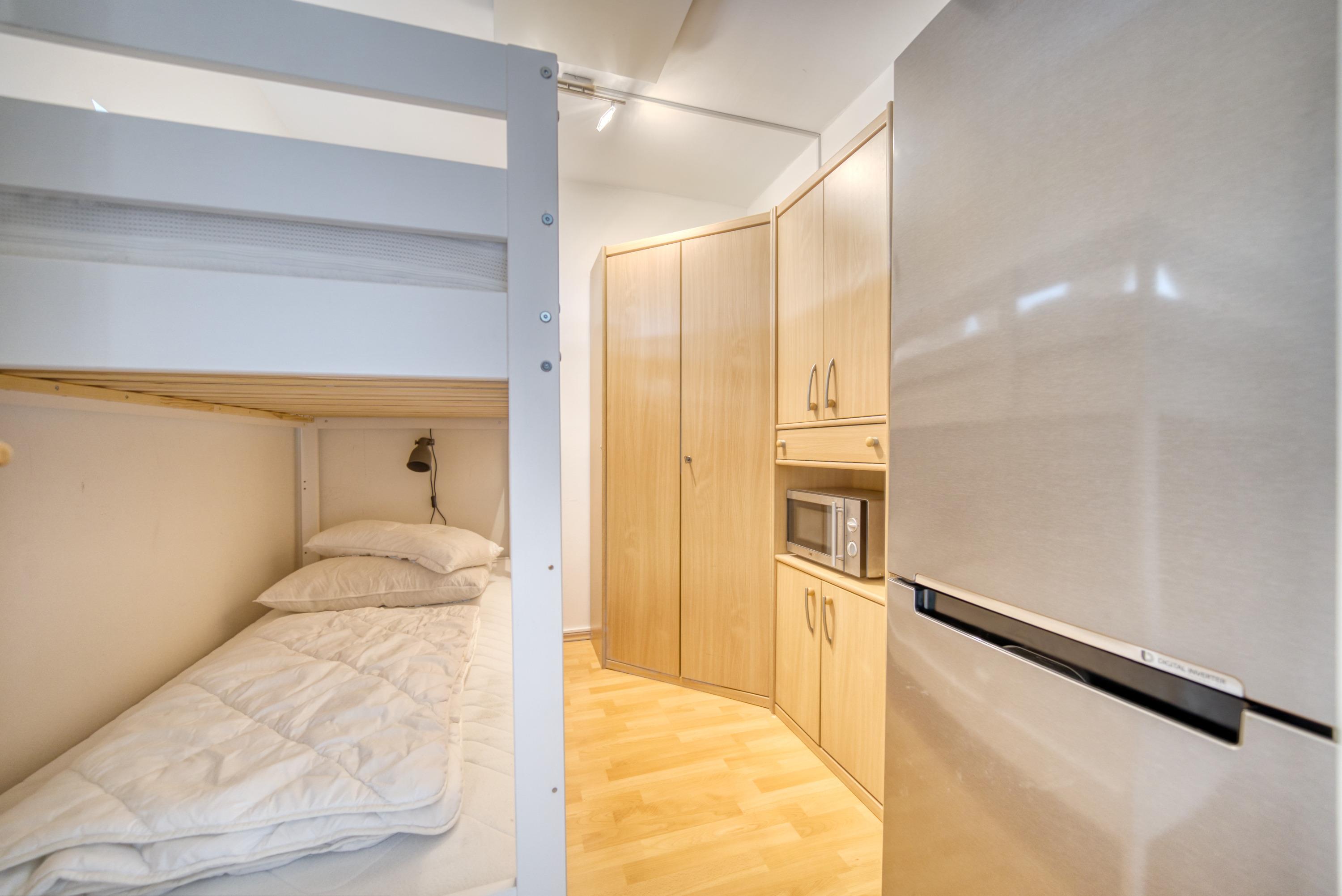 Zweites Schlafzimmer mit Hochbett und Stauraum