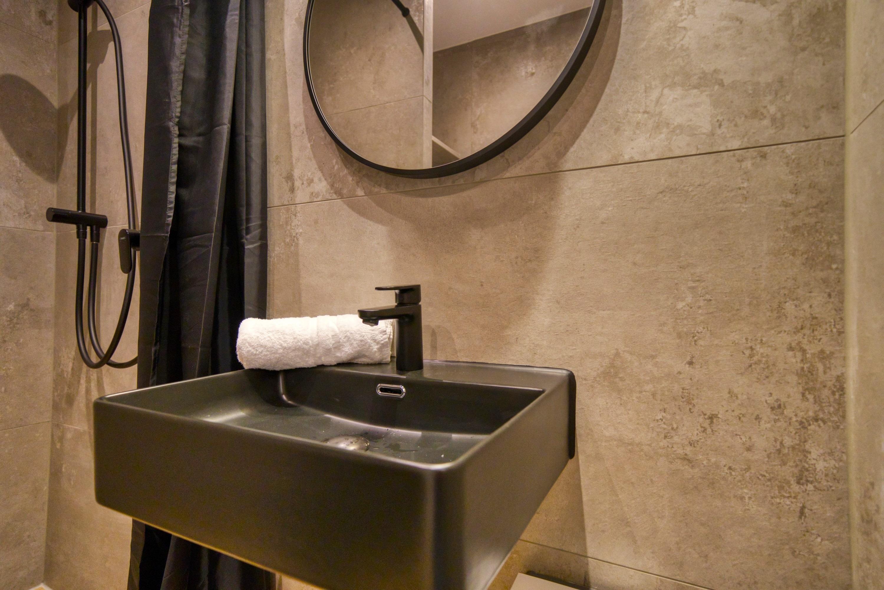 Badezimmer: Dusche (Kabine), WC, Handtuchhalter, Handtuchheizkörper, Fön