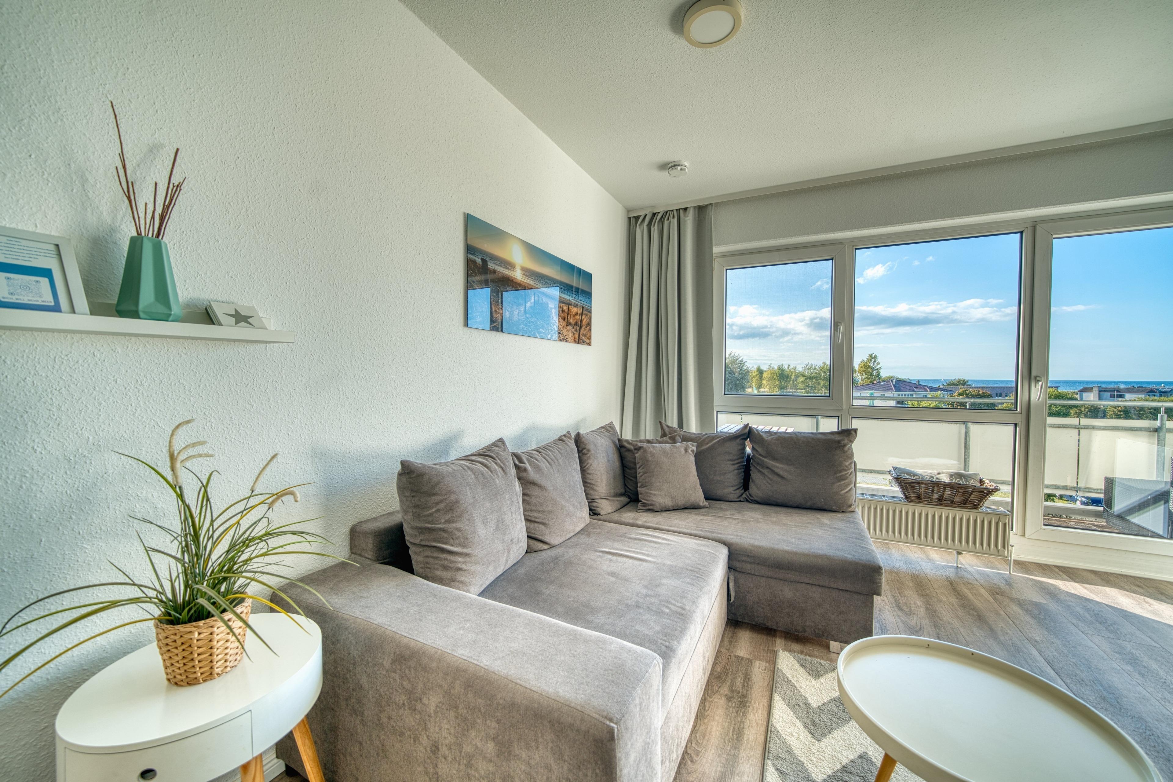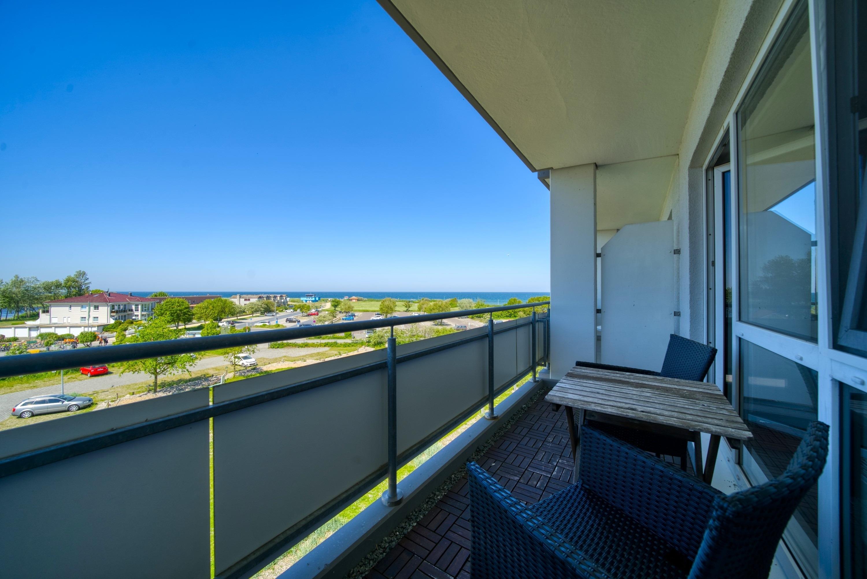 Lage: 4. Etage mit Fahrstuhl, Westbalkon mit Blick auf die Ostsee