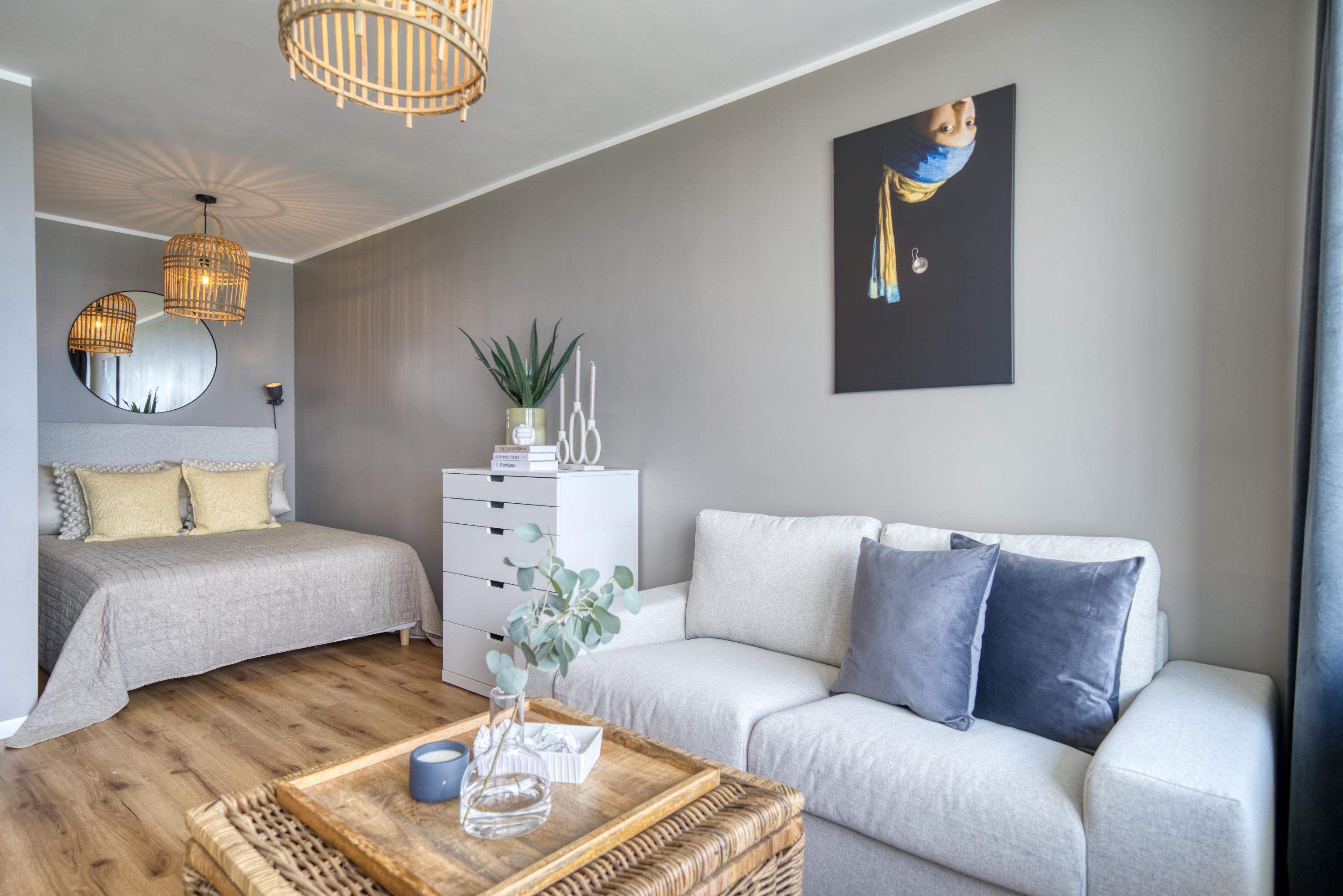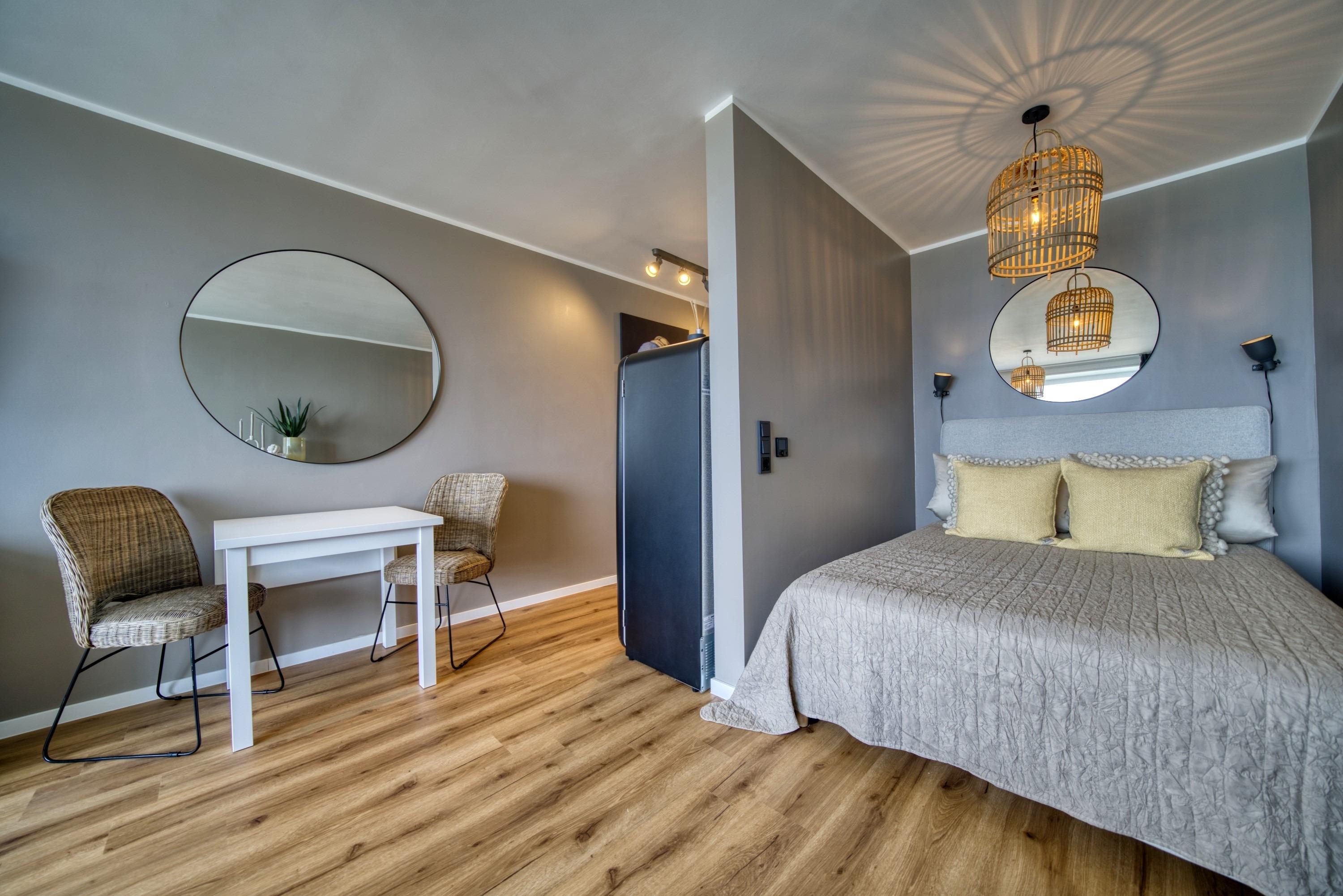Es erwartet Sie ein offener Schlafbereich, ausgestattet mit einem Doppelbett sowie einer gemütlichen Schlafcouch, welche zum Doppelbett ausklappbar ist. Somit ist es möglich, das Appartement mit bis zu 4 Personen (2 Erwachsene und 2 Kindern) zu belegen. In der kalten Jahreszeit darf man sich, dank der Fußbodenheizung, auf warme Temperaturen und Füße freuen.