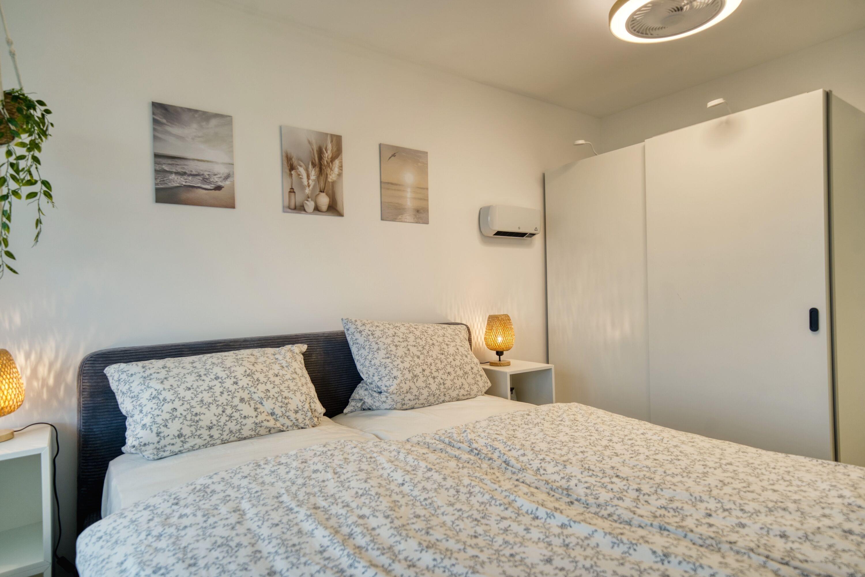 Schlafmöglichkeiten: Schlafzimmer mit Doppelbett und TV, separates Kinderzimmer