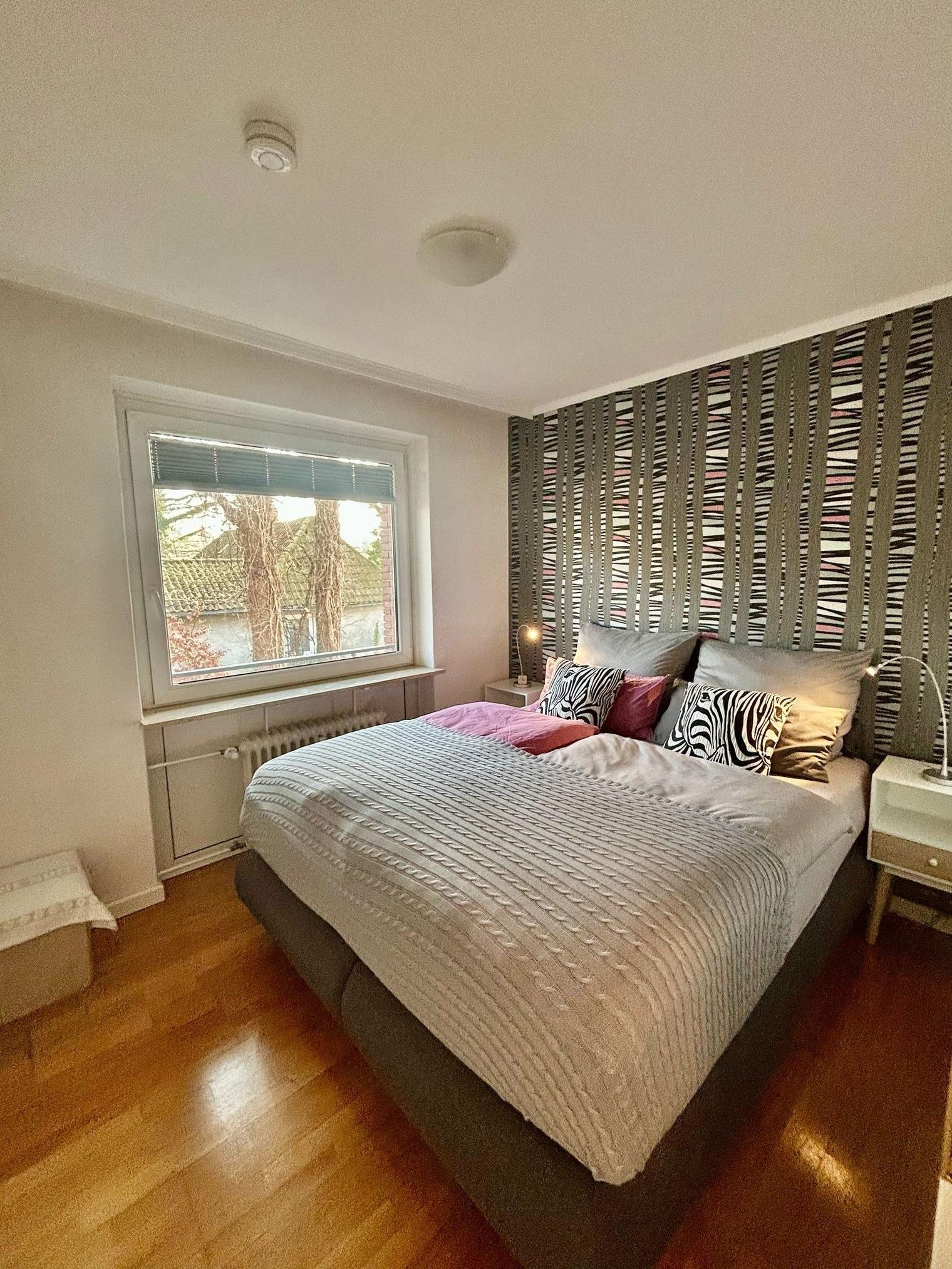 Im separaten Schlafzimmer befindet sich ein Doppelbett mit den Maßen 160x200. Der Kleiderschrank befindet sich direkt nebenan im Flur.