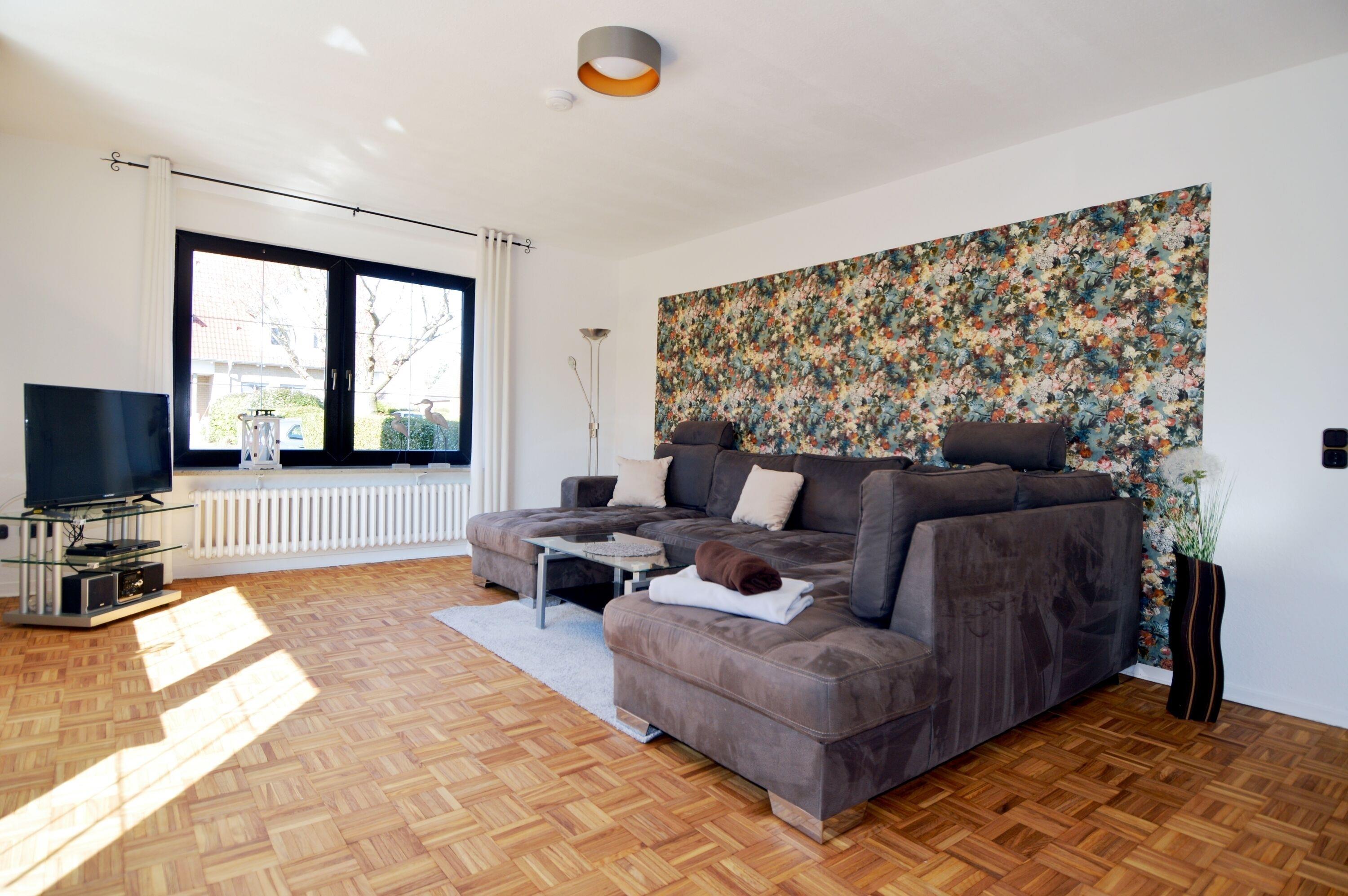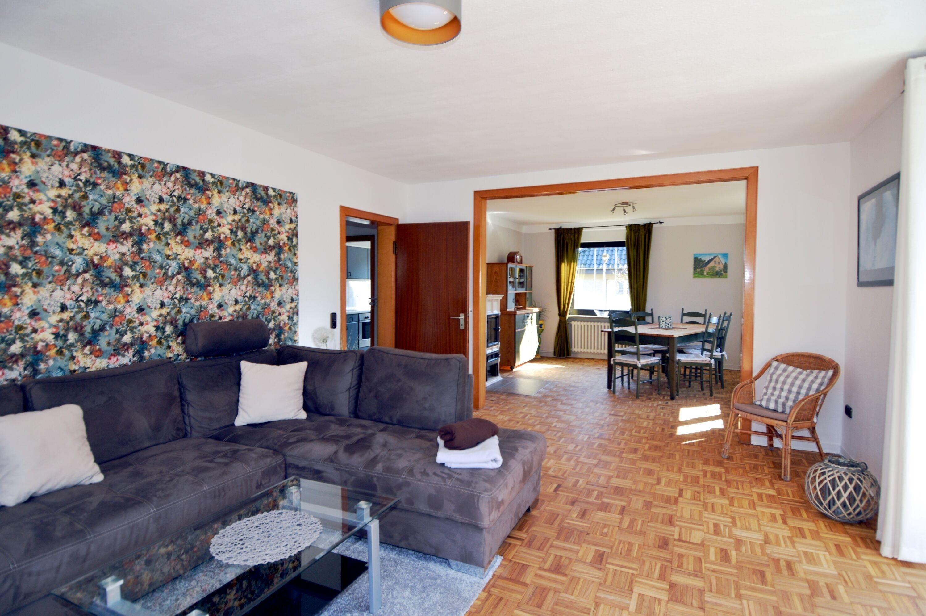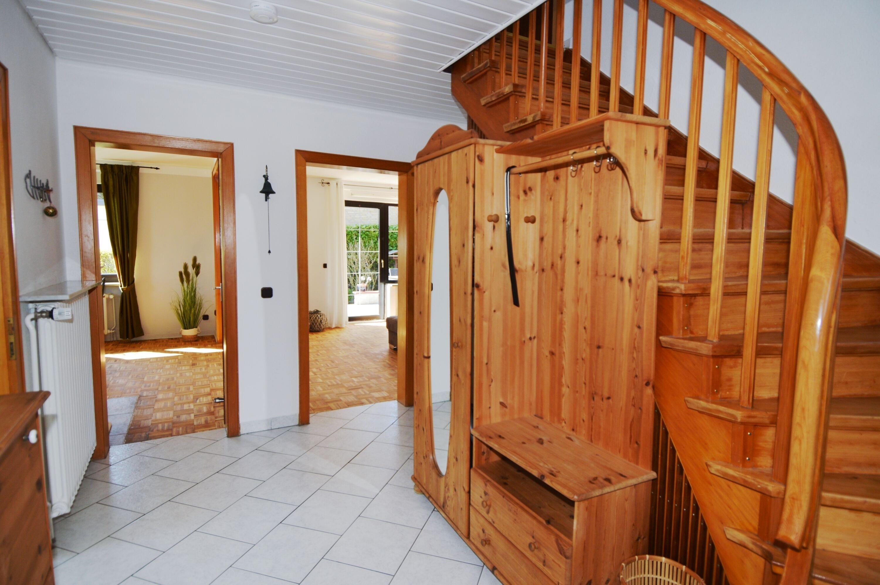 Dieses gemütliche Ferienhaus befindet sich in einem Wohngebiet in ruhiger Lage und bietet viel Platz auf 120 qm für bis zu 6 Personen. Im Erdgeschoss befindet sich der großzügige Wohn- und Essbereich mit einer großen Couch und Fernseher, großem Esstisch und Kaminofen (ohne Holzvorrat). Dem Wohnzimmer angegliedert ist eine großzügige Terrasse mit Gartenmöbel. Weiterhin befinden sich die Küche, das Gäste WC und ein Schlafzimmer (Bett 140x200) im EG.