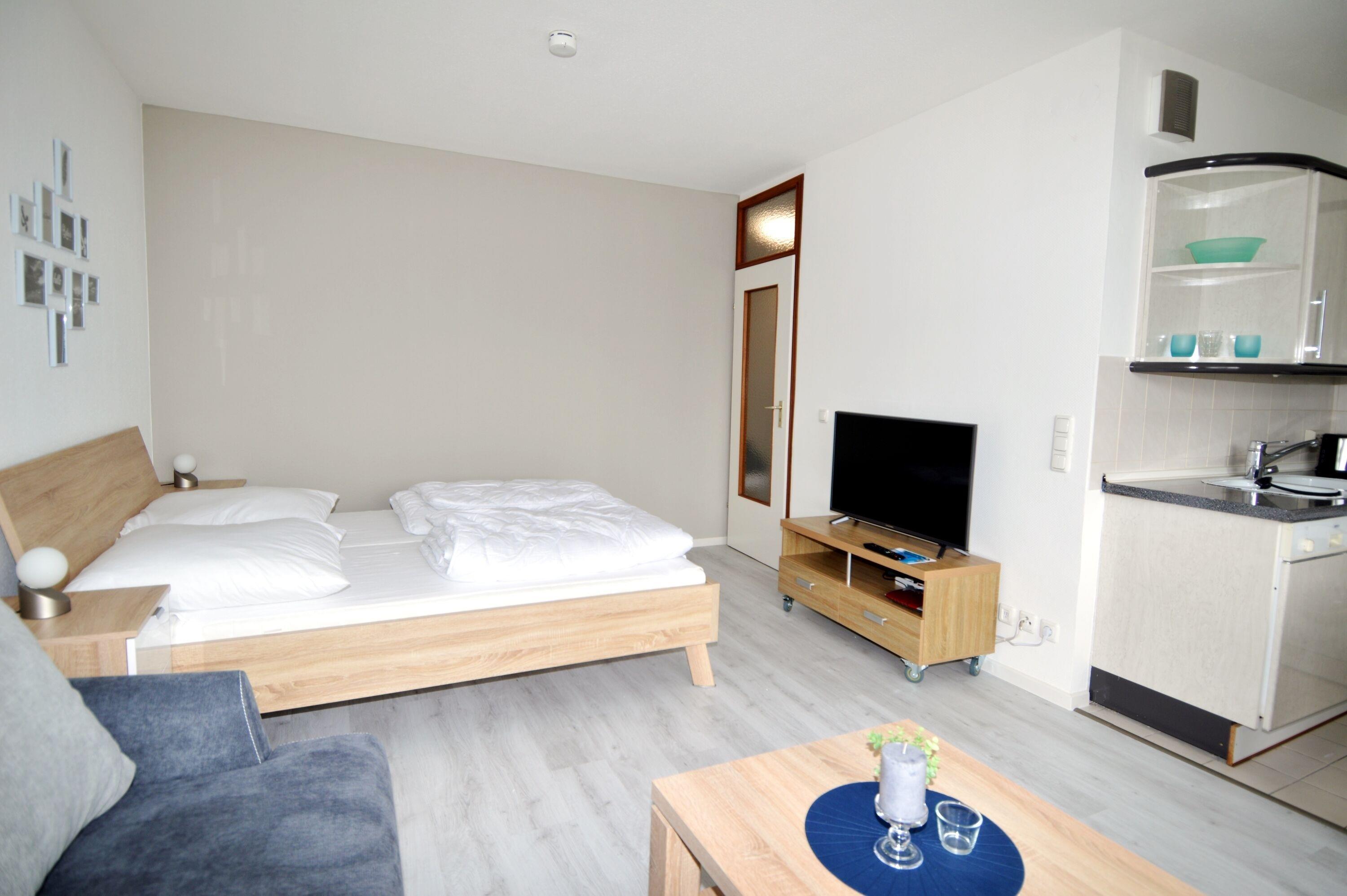 Willkommen in Ihrem neuen Zuhause für die nächste Zeit. Diese charmante Wohnung bietet nicht nur eine ideale Lage, sondern auch eine Vielzahl von Annehmlichkeiten, die das Leben hier besonders angenehm machen. Lassen Sie uns einen Blick auf die Highlights dieser einzigartigen Wohnung werfen. Dieses süße, kleine Appartement mit 38qm Wohnfläche bietet Platz für 2 Personen und liegt im Ferienpark im Haus G in der 3. Etage. Neben der urlaubsfreundlichen, hellen Einrichtung bietet sich Ihnen ein direkter Ausblick auf den begrünten Innenhof, den Sie ganz gemütlich von dem Balkon aus genießen können.