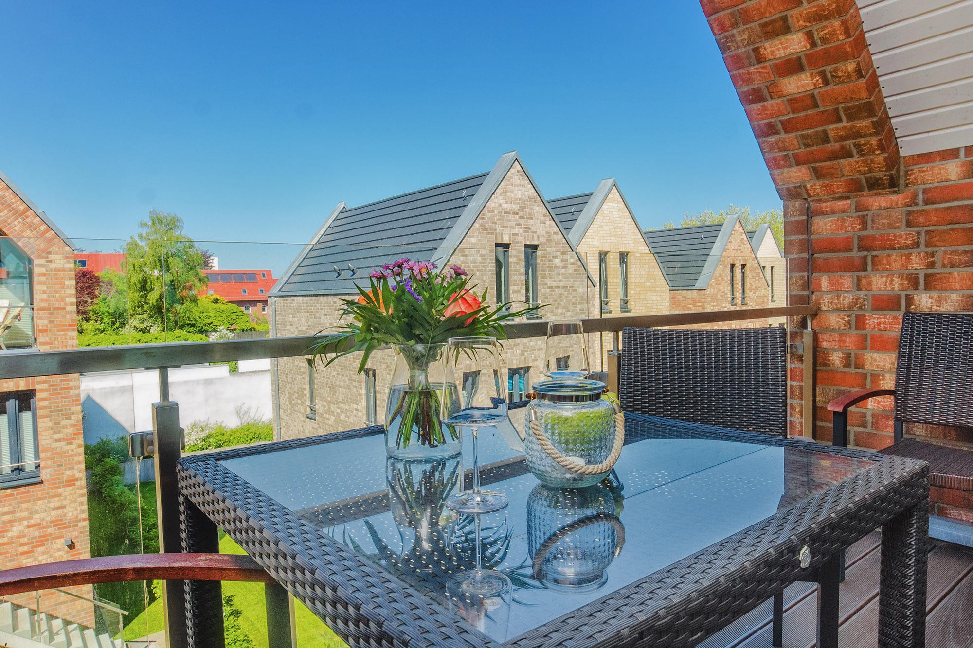 Über die Treppe gelangen Sie ins Dachgeschoss, wo sich neben dem Wohnbereich die offene, voll ausgestattete Küche befindet. Diese bietet Ihnen alle Annehmlichkeiten, die Sie für Ihren Aufenthalt benötigen, darunter eine Spülmaschine und moderne Küchengeräte. Der angrenzende Essbereich lädt zu geselligen Mahlzeiten in stilvollem Ambiente ein. Auf dem West-Balkon genießen Sie entspannte Stunden und lassen die Sonne über der Ostsee untergehen – der perfekte Ort, um den Tag bei einem Glas Wein ausklingen zu lassen.