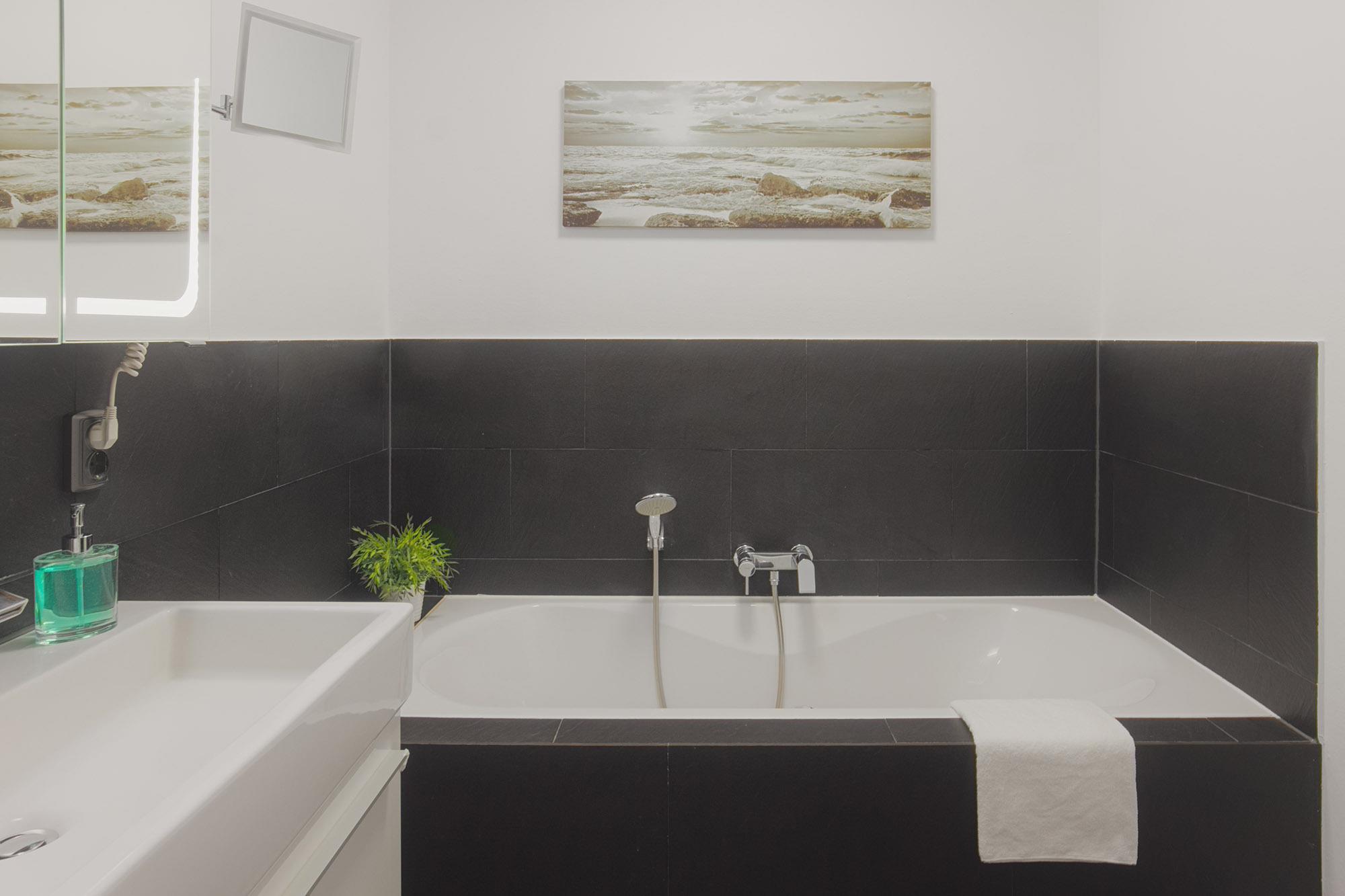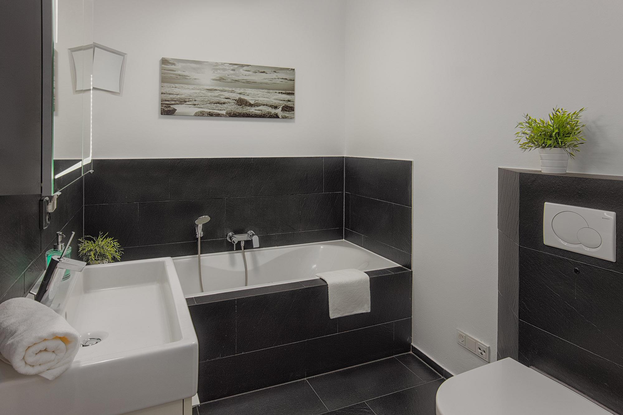 Um sich die Frische vom Tag wiederzuholen, nutzen Sie einfach zwei moderne Badezimmer und die Sauna. Diese geben Ihnen einmal als Wannenbad und einmal als Duschbad volle Flexibilität. Die Sauna ist dabei im Duschbad integriert. Ob Wanne, ebenerdige Dusche, WC, Waschbecken, Spiegel und Handtuchwärmer, alles rundet hier die Bäder ab. Zudem ist hier auch ein Kombigerät Waschmaschine mit Trockner verfügbar.