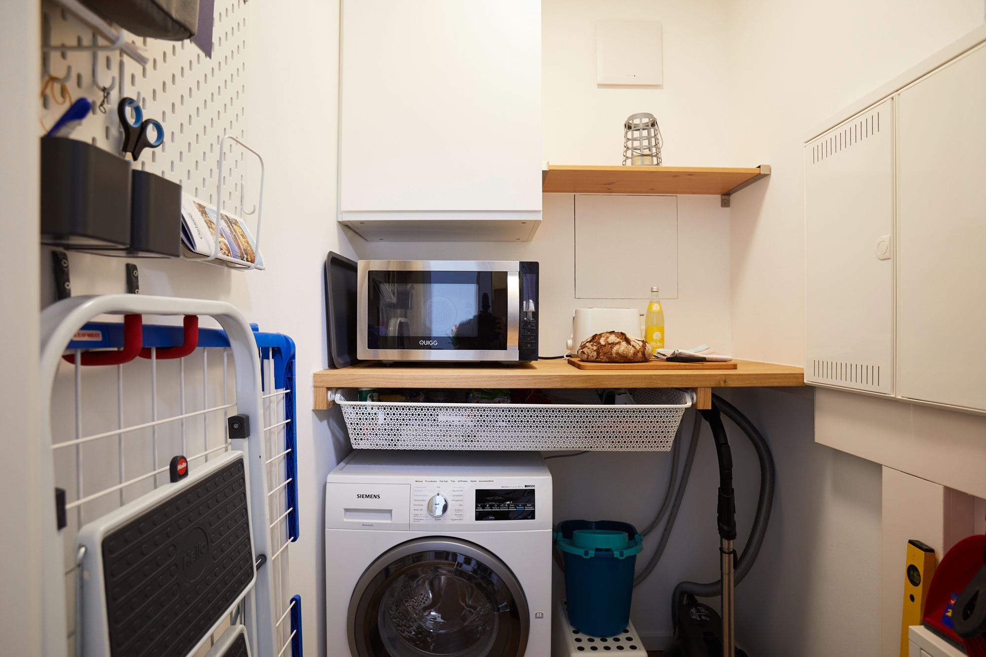 Die offene Küche ist modern und voll ausgestattet mit Induktionsherd, Spülmaschine, Grill-Mikrowelle und einem Minigrill für den Balkon. Der Essbereich schließt sich direkt an den Wohnbereich an – perfekt für gemeinsame Mahlzeiten in gemütlicher Atmosphäre.