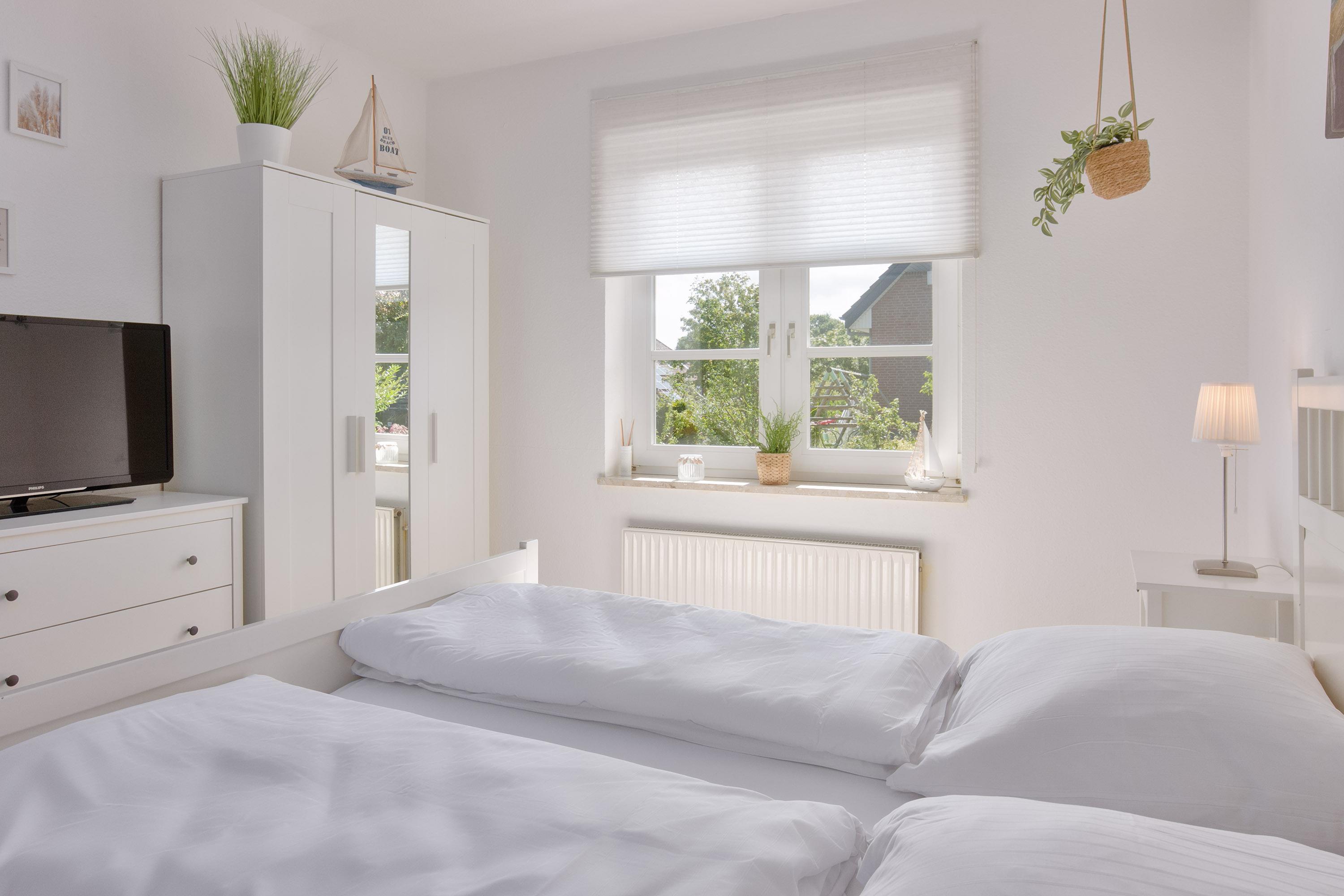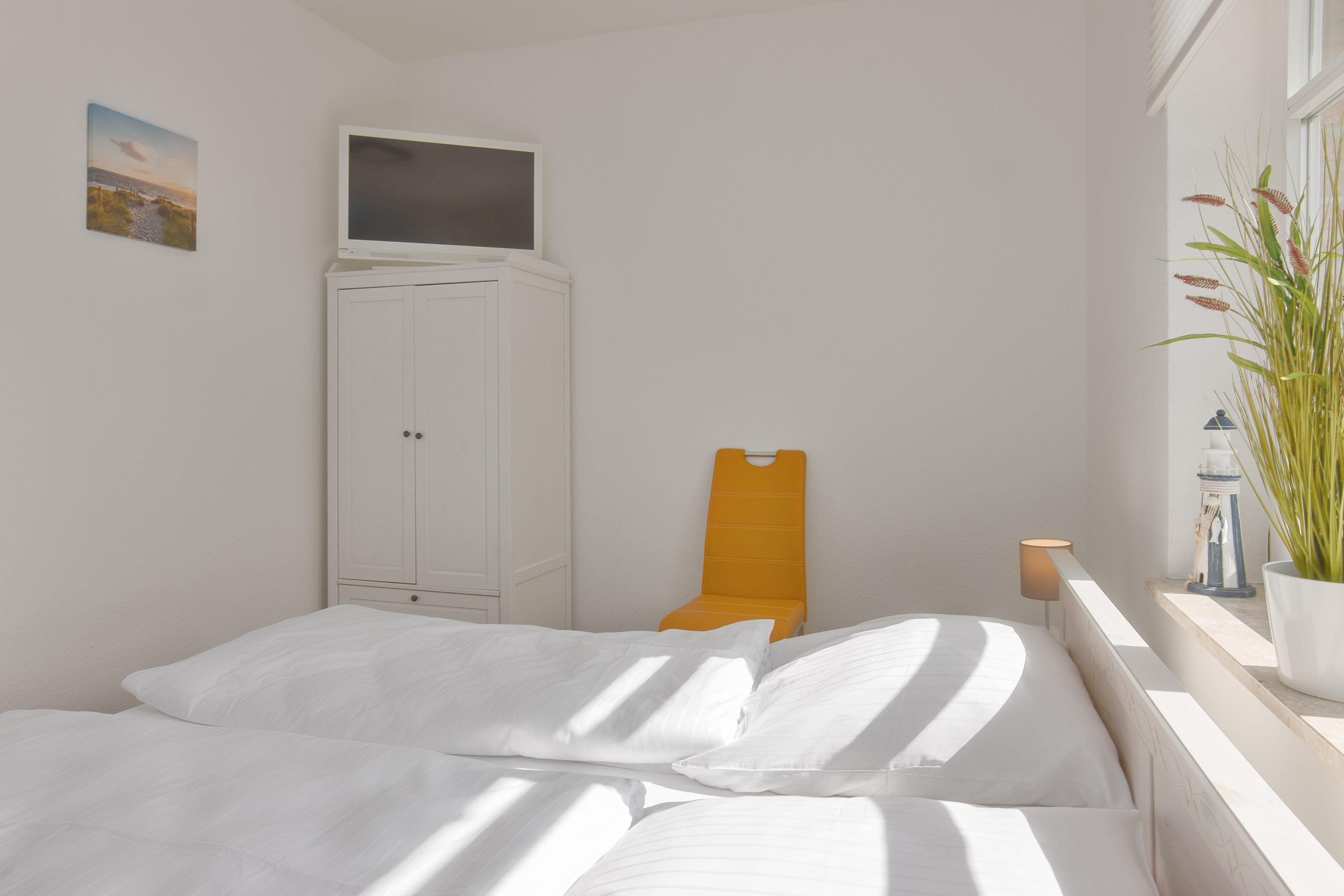 Komfortabel geht es im ersten Schlafzimmer der Wohnung weiter. Hier wartet ein einladendes Doppelbett (180x200) und TV. Das zweite Schlafzimmer hat ebenfalls ein Doppelbett (180x200) und TV, sowie der dritte Schlafraum zwei Einzelbetten (90x200). Kleiderschränke und Kommoden bieten dabei ausreichenden Stauraum.
