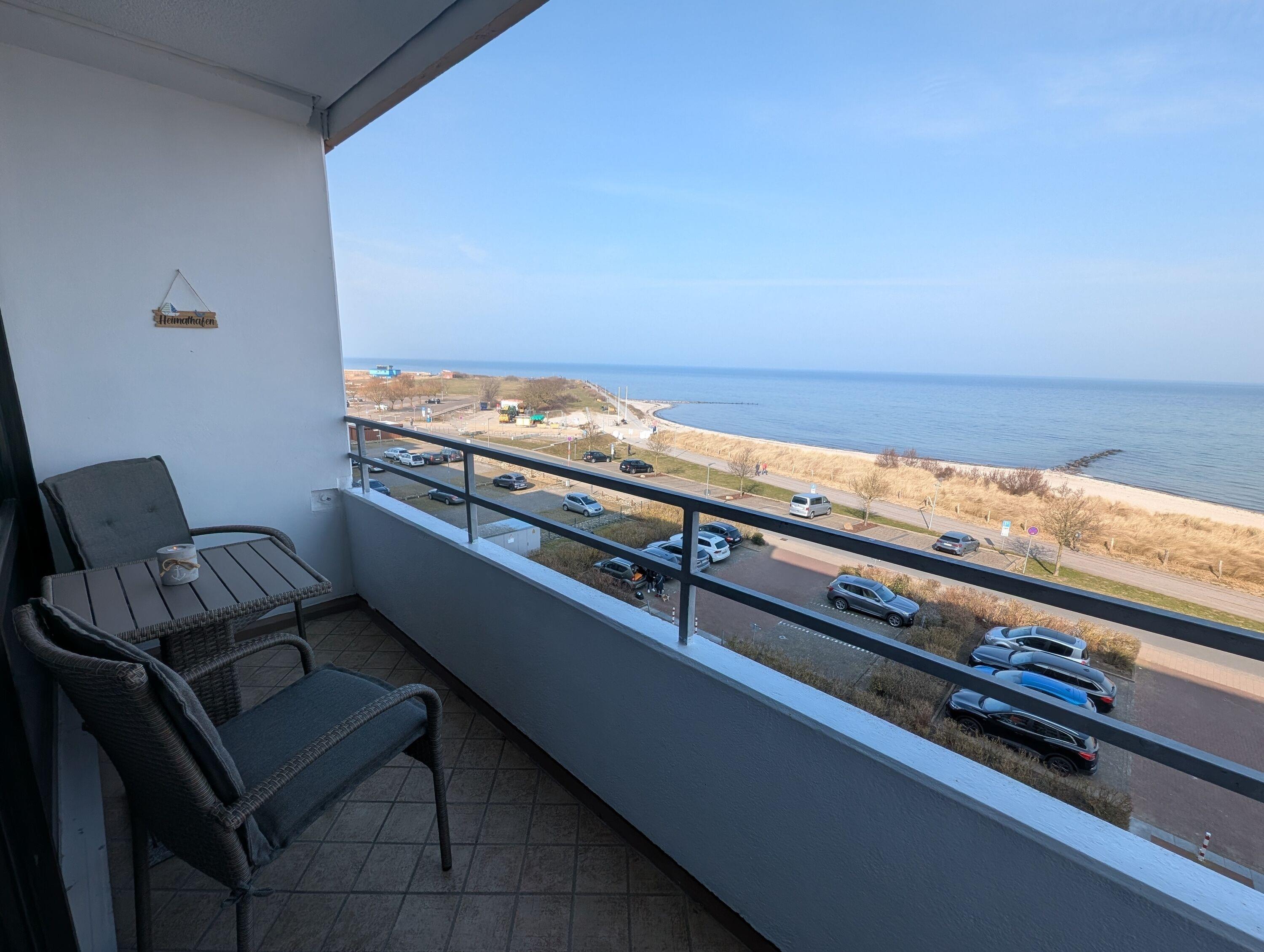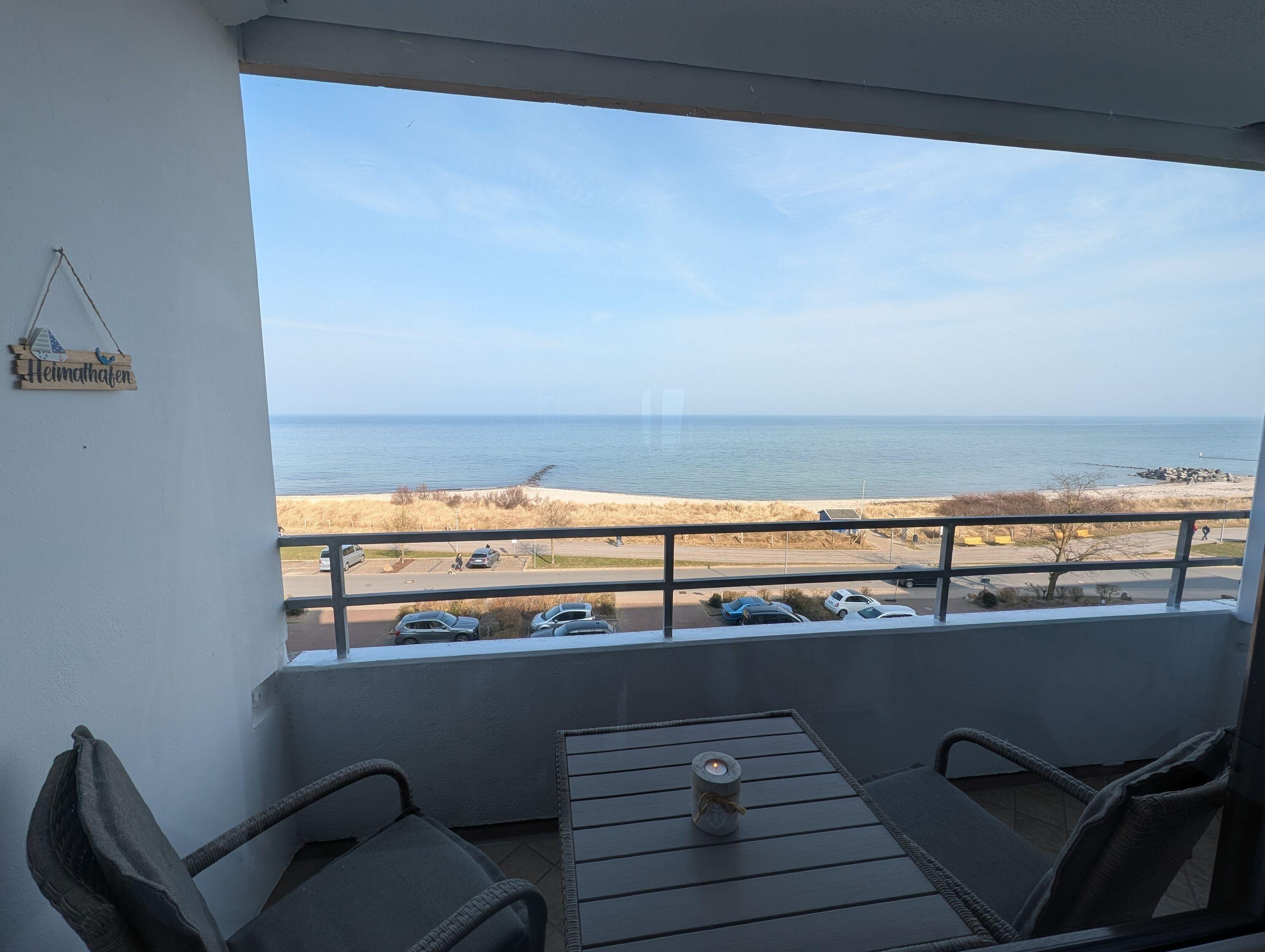 Die Ferienwohnung "Heimathafen", Steinwarder 37 (Haus Schöne Aussicht), Wohnung 8 in Heiligenhafen bietet auf 38 m² Platz für maximal 2 Personen. Genießen Sie den fantastischen Ostseeblick bei einer Tasse Kaffee und beobachten Sie die Surfer und Kiter bei Ihren Tricks.