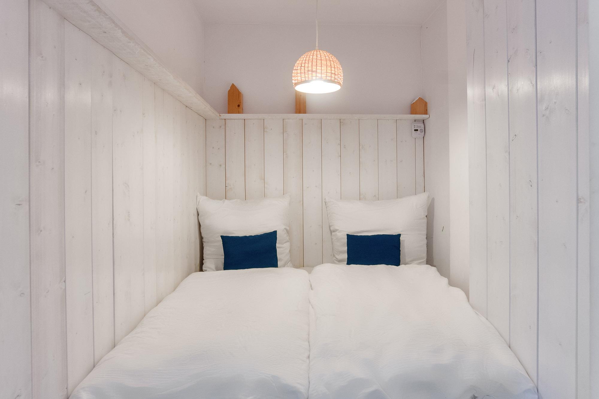 Im Schlafzimmer steht ein Doppelbett (180x200 cm, getrennte Matratzen) sowie ein geräumiger Kleiderschrank zur Verfügung. Ein gemütlicher Alkoven im dänischen Stil (140x200 cm) ist besonders bei Kindern beliebt. Beide Schlafräume sind mit Schiebetüren ausgestattet. Alternativ kann die Couch im Wohnbereich als zusätzliche Schlafgelegenheit genutzt werden. Bettwäsche, auch für Allergiker geeignet, Handtücher, ein Babyreisebett und ein Hochstuhl können bei Bedarf geliehen werden. Verdunkelungsvorhänge sorgen für erholsamen Schlaf.