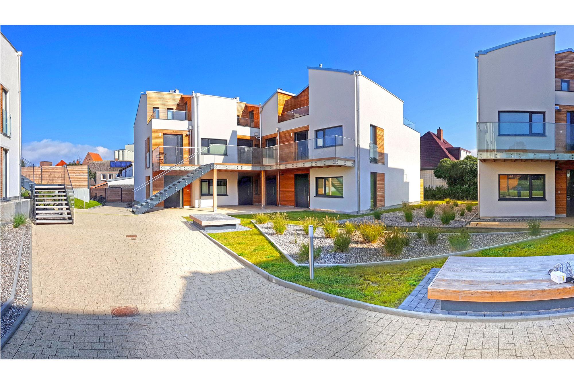 Sämtliche Räume sind barrierearm gestaltet. Der Parkplatz liegt direkt vor der Ferienanlage, weitere Parkmöglichkeiten gibt es auf öffentlichen Stellflächen in der Umgebung. Der Marktplatz ist nur 500 Meter entfernt, der Hafen 300 Meter und der Strand mit Seebrücke etwa 1.200 Meter.
