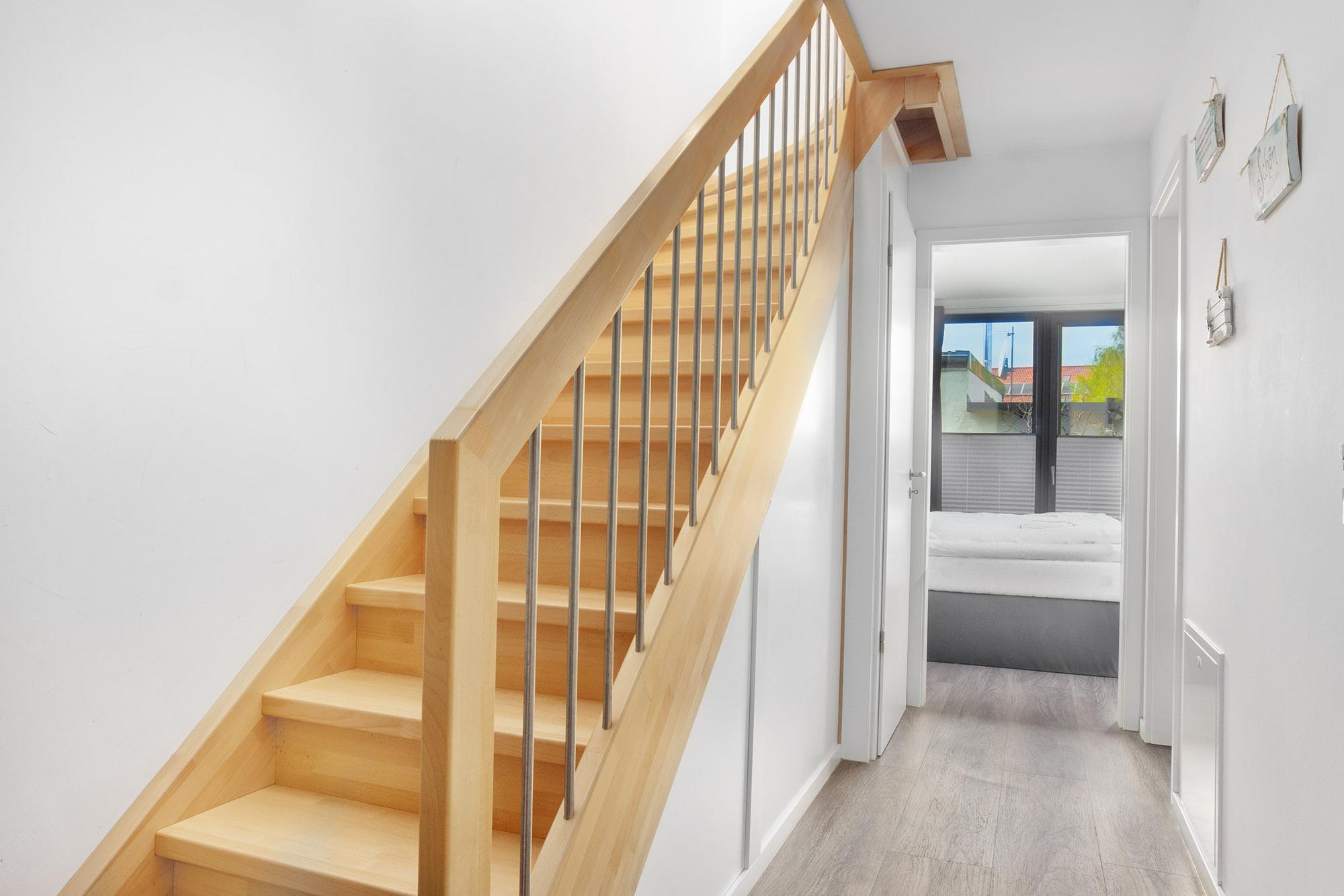 Die komfortable Maisonette-Wohnung erstreckt sich über zwei Ebenen im 1. Obergeschoss und Dachgeschoss und bietet mit ca. 64 m² Wohnfläche ausreichend Platz für bis zu vier Personen oder eine Familie mit Hund. Modern und stilvoll eingerichtet, überzeugt die Jakobskoje mit gemütlichem Ambiente und durchdachten Details. Das lichtdurchflutete Dachgeschoss bildet mit einem geschmackvoll eingerichteten Wohnbereich das Herzstück der Wohnung. Eine bequeme Couch und ein Schwingsessel laden zum Verweilen ein, während Smart-TV, Radio-Musikanlage und WLAN für Unterhaltung sorgen. Besonders an kühleren Tagen sorgt die Fußbodenheizung in allen Räumen für angenehme Wärme und Wohlbefinden.