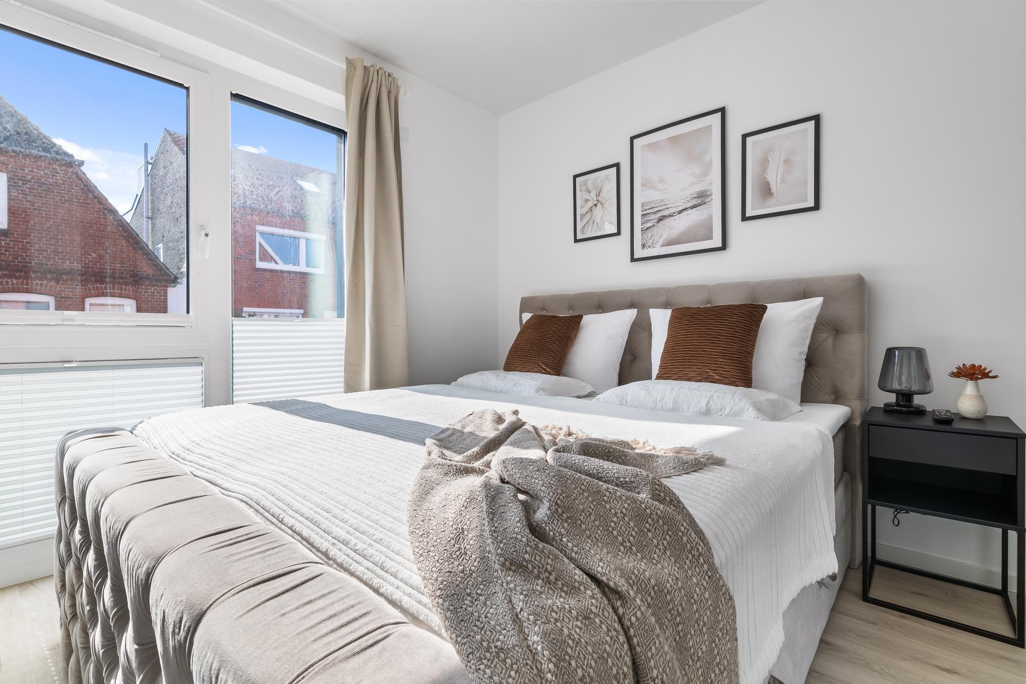 Herzstück ist der einladende Wohn- und Essbereich. Hier kann auf der gemütlichen Couch entspannt werden oder Sie genießen gesellige Stunden am Esstisch. Naturtöne und mit viel Geschick ausgewählte Dekorationen sorgen für ein wunderbar wohnliches Gefühl. TV und WLAN sind selbstverständlich. Durch die großen, charmanten Fenster haben Sie einen Blick in die Außenanlage vom Harbour Side Heiligenhafen.
