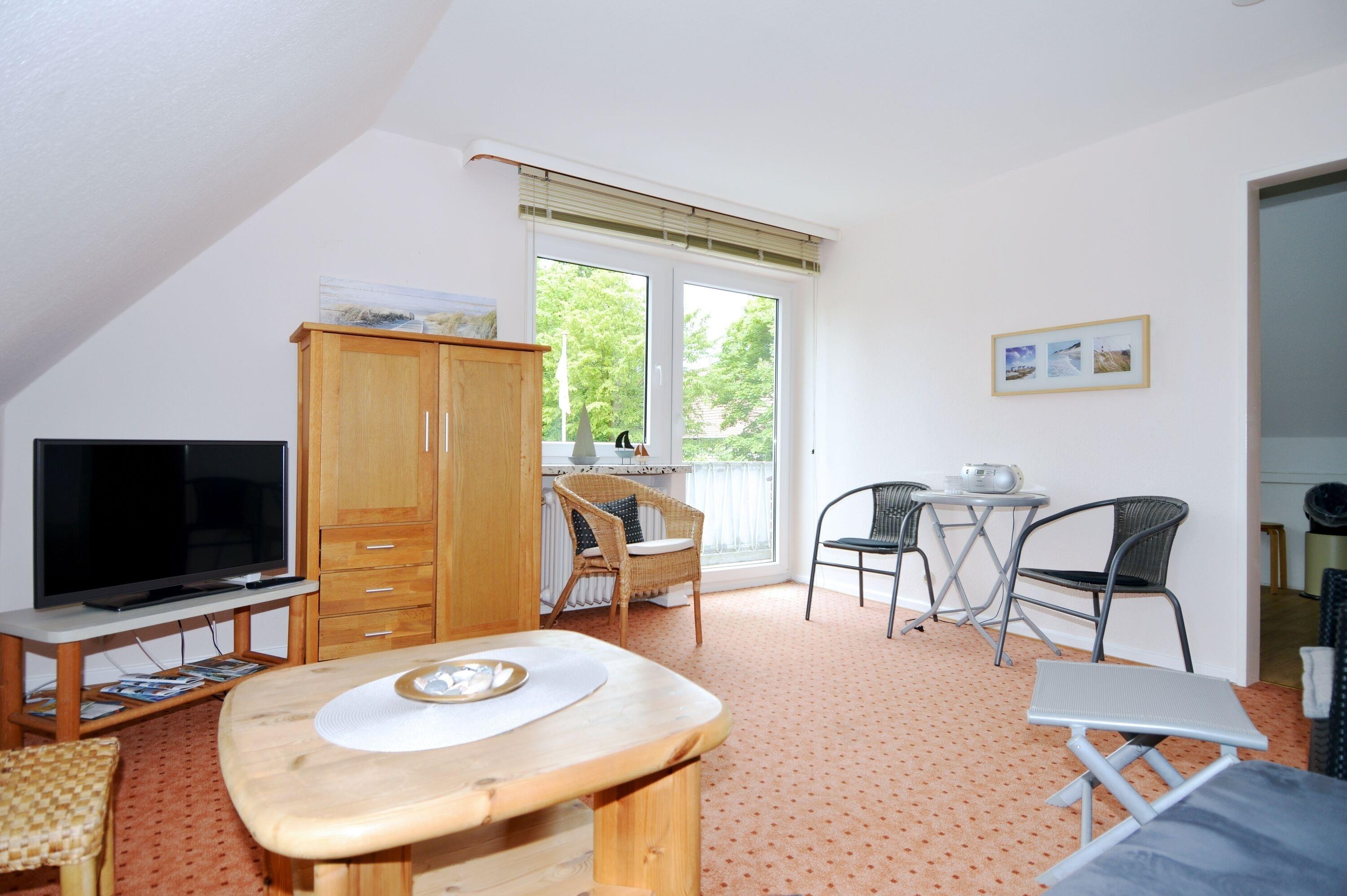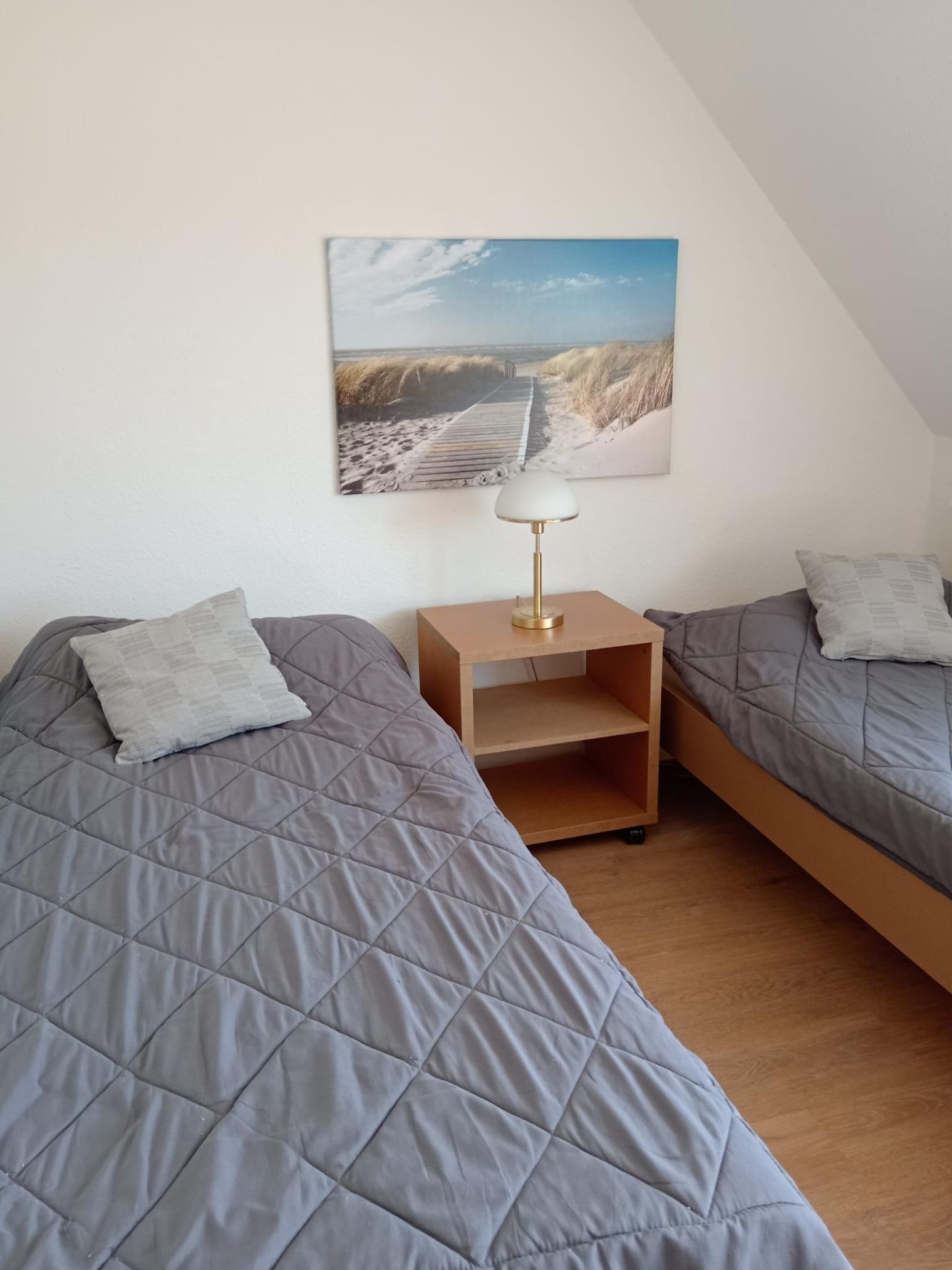 Im Obergeschoss eines Einfamilienhauses liegt diese süße Wohnung für 2 Personen. Über einen separaten Zugang gelangen Sie in die erste Etage. Die Wohnung bietet auf ca. 45 qm Wohnfläche ein Wohnzimmer, ein separates Schlafzimmer mit zwei Einzelbetten und ein Duschbad. Falls Sie separate Schlafzimmer benötigen, lässt sich die Couch zu einem Bett umwandeln. Auf dem Süd-Westbalkon lässt es sich bei einer Tasse Kaffee oder einem Glas Wein wunderbar entspannen.