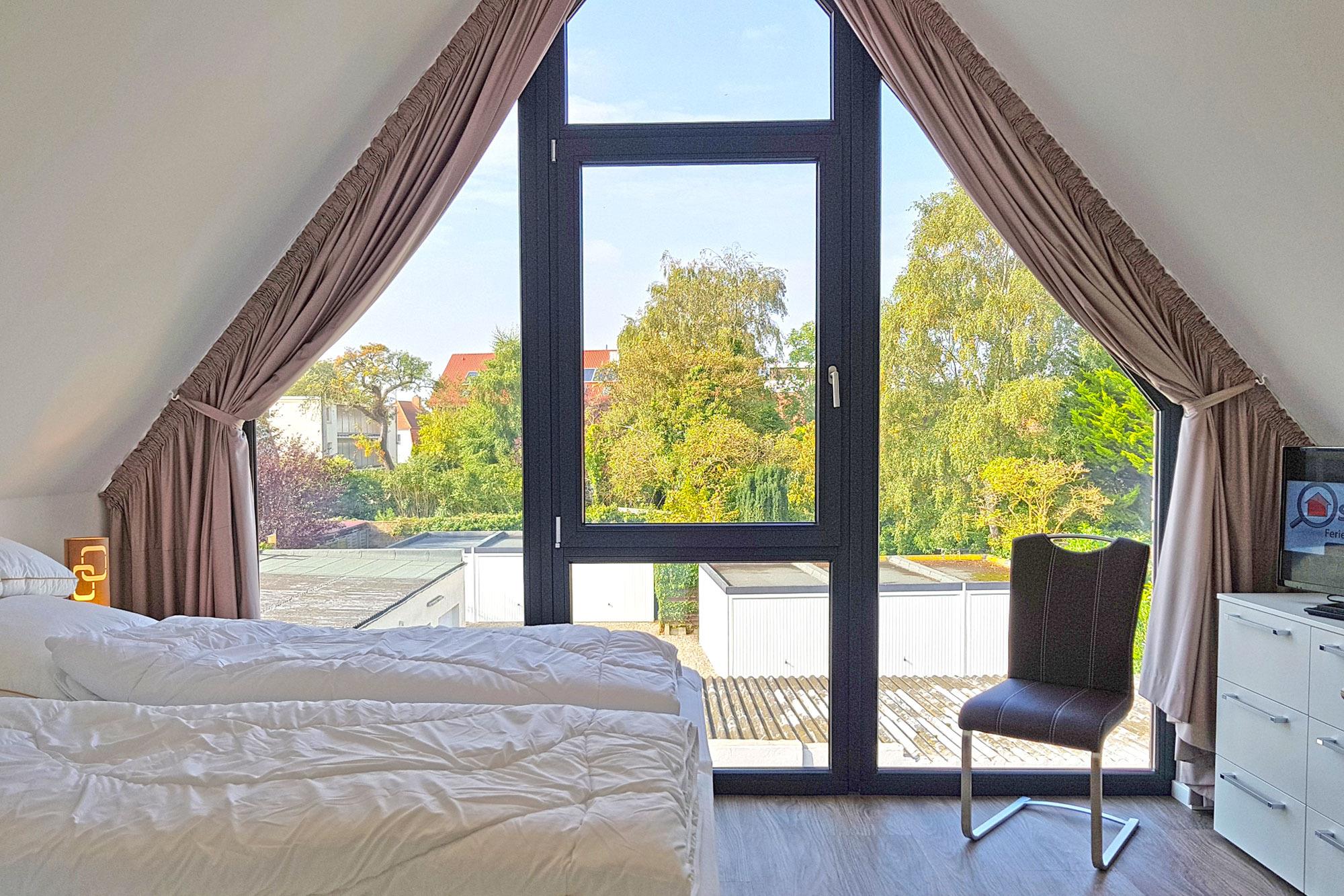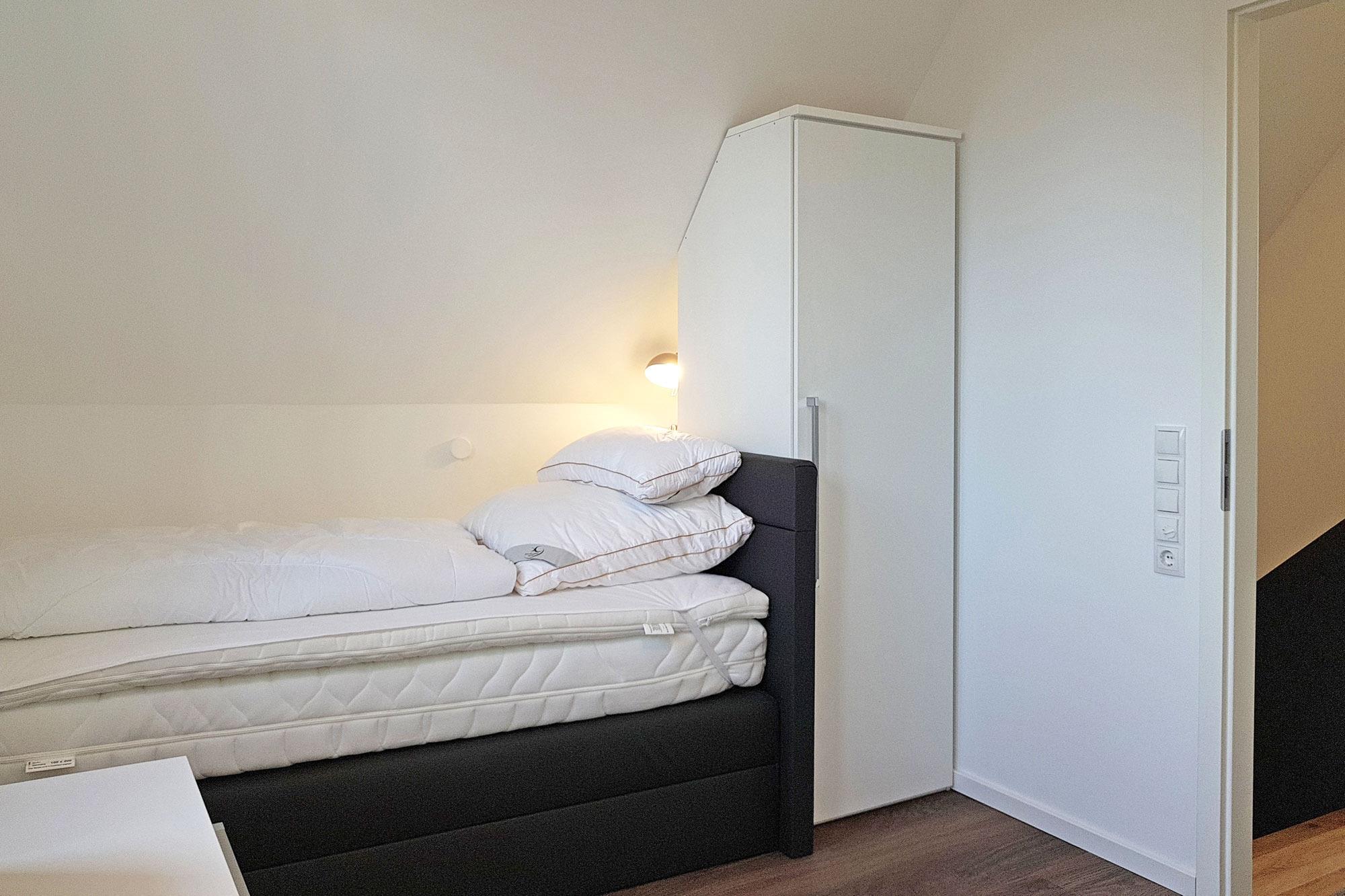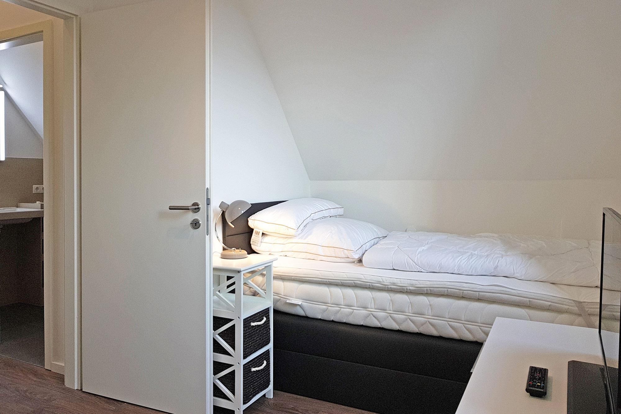 Besonders für Familien und kleine Gruppen ist dieses Ferienhaus optimal, denn es verfügt über drei gemütliche Schlafzimmer. Im ersten Obergeschoss erwartet Sie ein komfortables Doppelboxspringbett, während sich im Dachgeschoss ein weiteres Doppelboxspringbett sowie zwei Einzelboxspringbetten befinden. Für kleine Gäste stehen ein Baby-Reisebett und ein Hochstuhl bereit. Auf Wunsch können Allergiker-geeignete Bettwäsche und Handtuchsets gegen Gebühr gebucht werden. Vorhänge und Plissees sorgen für die nötige Verdunklung und eine ruhige Nacht.
