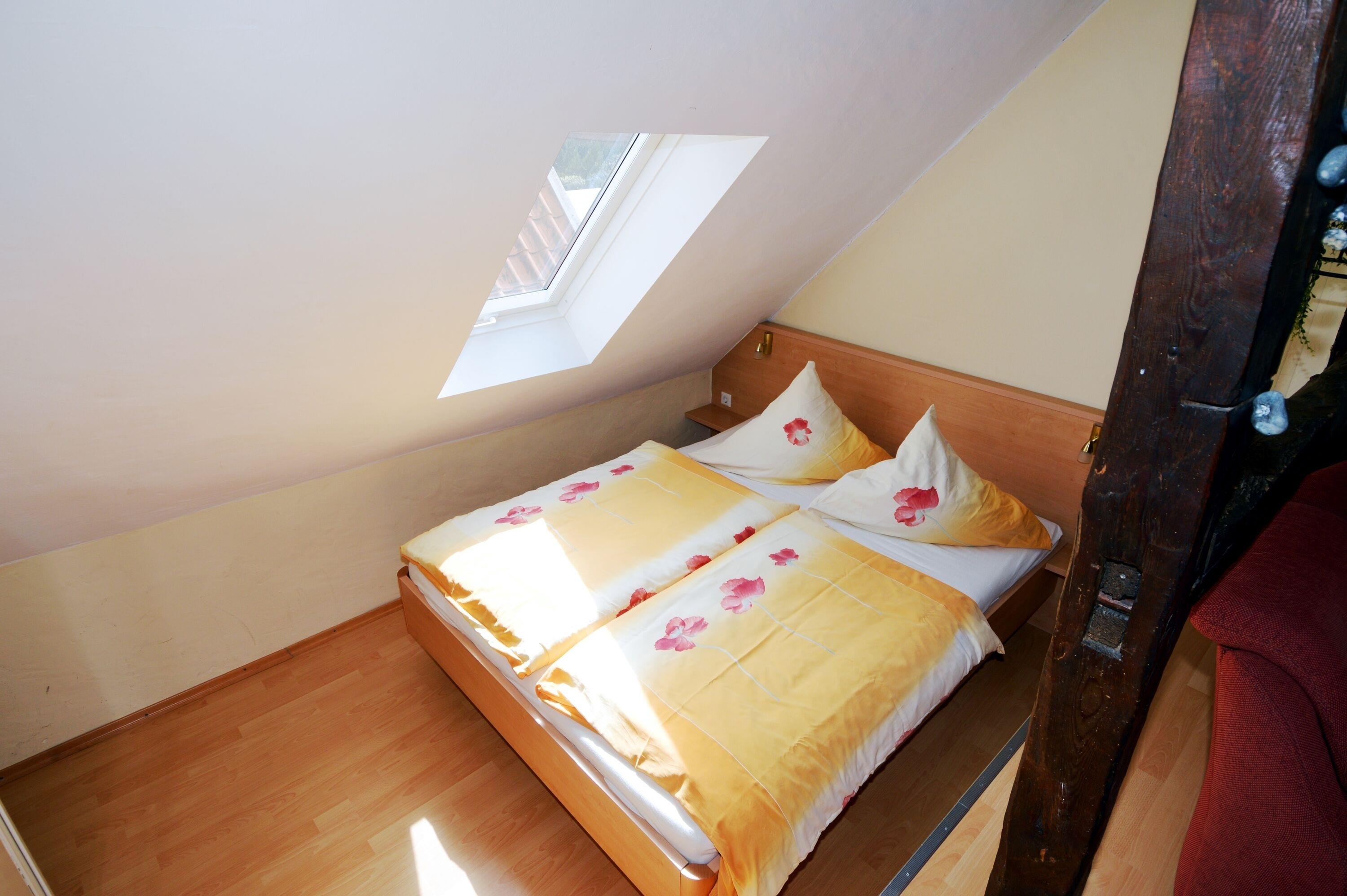 1. Etage bietet Ihnen Platz für 2 Erwachene und 1 Kind. Das Wohnzimmer bietet einen interessant gestalteten Schlafbereich mit Ehebett. Das kleine Schlafzimmer ist für das Kind. Das Haus befindet sich nur wenige Schritte vom Marktplatz entfernt in der Mühlenstraße.