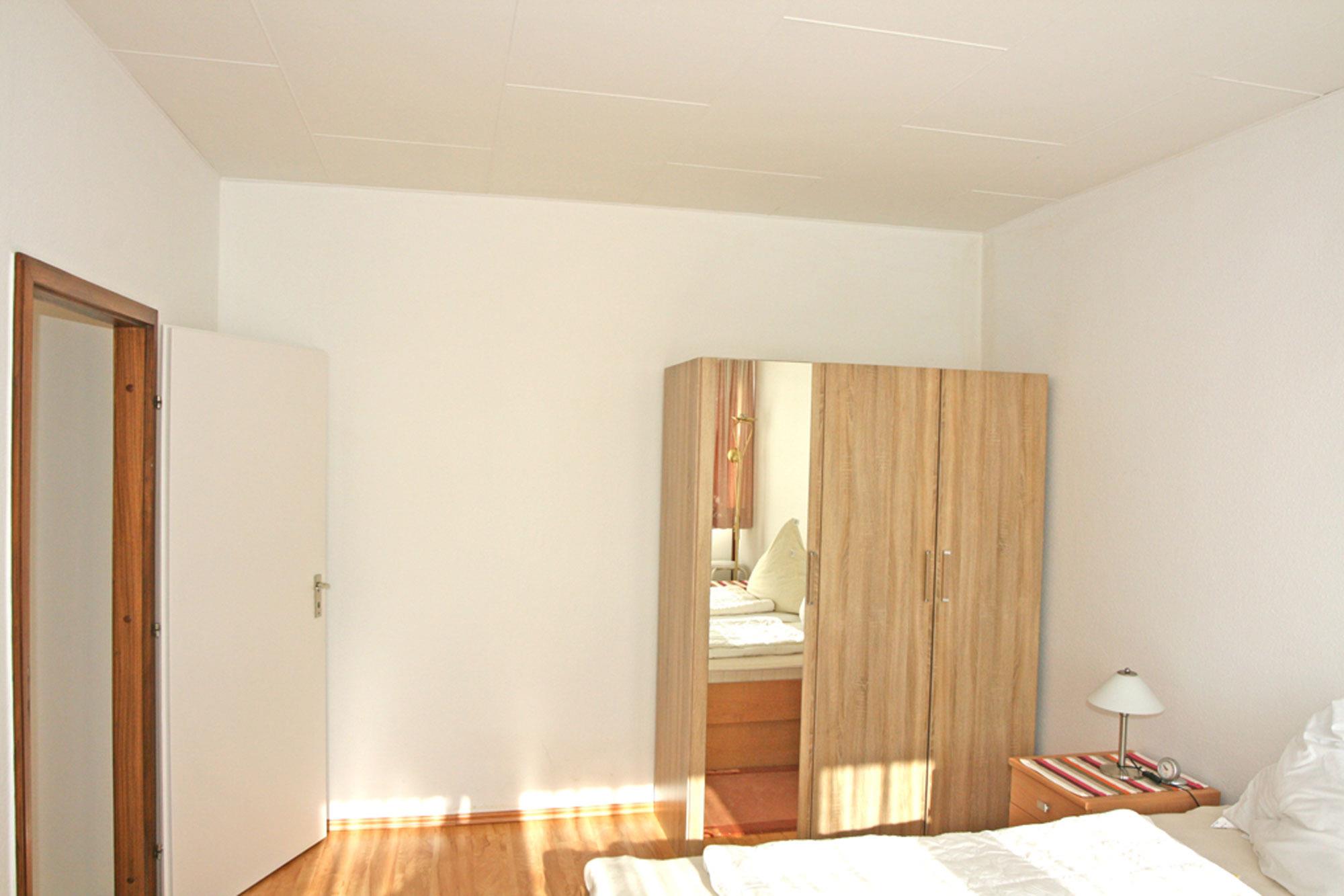 Das Schlafzimmer ist mit einem komfortablen Doppelbett ausgestattet, das für erholsame Nächte sorgt. Im Wohnbereich finden Sie ein Schlafsofa, das zusätzlichen Platz für zwei Personen bietet, sodass die Wohnung flexibel genutzt werden kann. Der Fußboden im Wohnbereich ist mit hochwertigem Laminat ausgelegt, was nicht nur modern aussieht, sondern auch pflegeleicht ist. Das Badezimmer ist gefliest und bietet eine angenehme, saubere Umgebung.