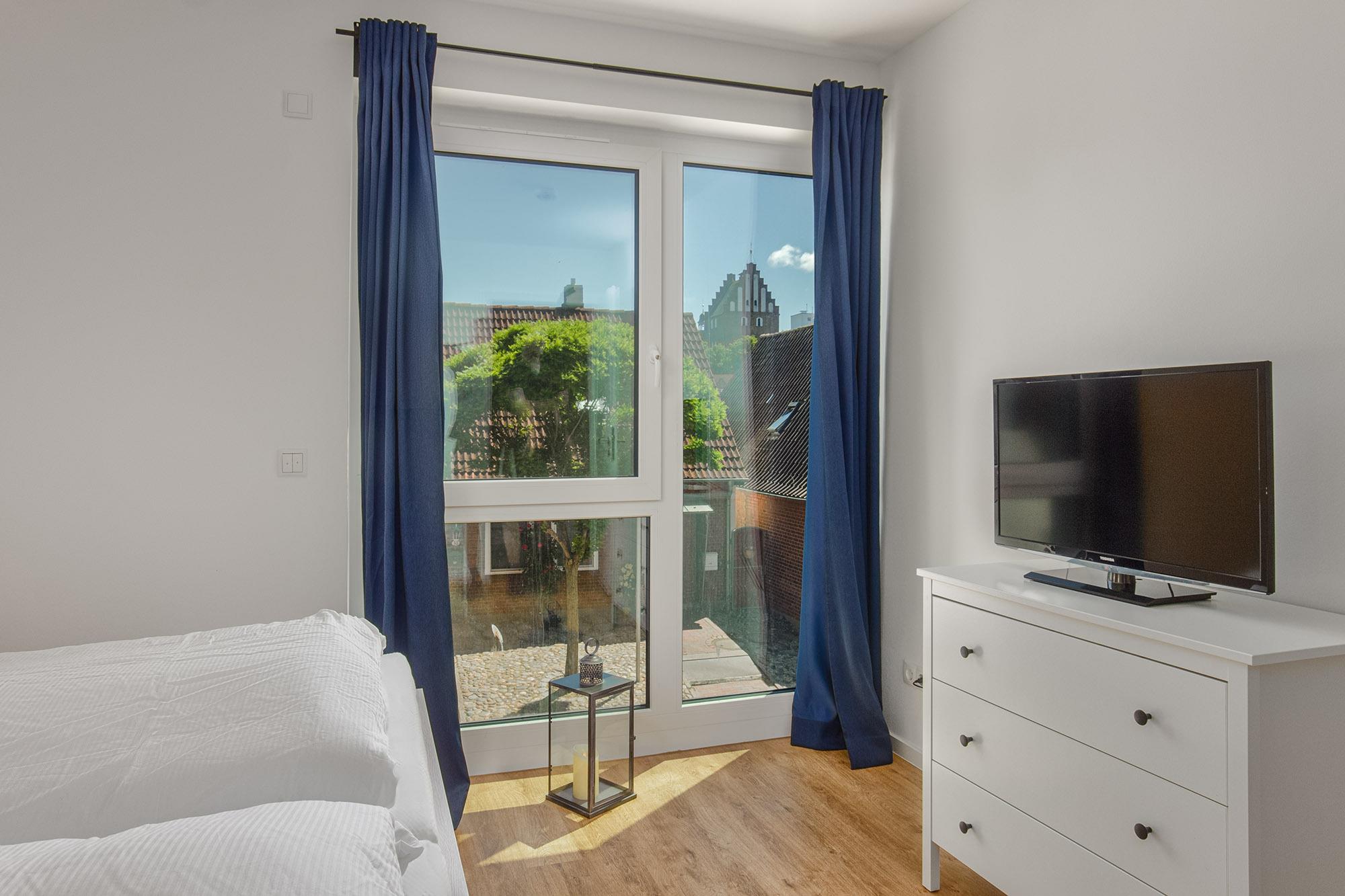 Ebenso komfortabel geht es in den zwei Schlafzimmern der Wohnung weiter. Hier erwarten Sie jeweils gemütliche Doppelbetten (180x200) und zusätzlich in einem Schlafzimmer ein TV. So ist auch mal ein anderes Programm möglich. Zudem bietet die klappbare Schlafcouch im Wohnzimmer die Schlafmöglichkeit für zwei Kinder.