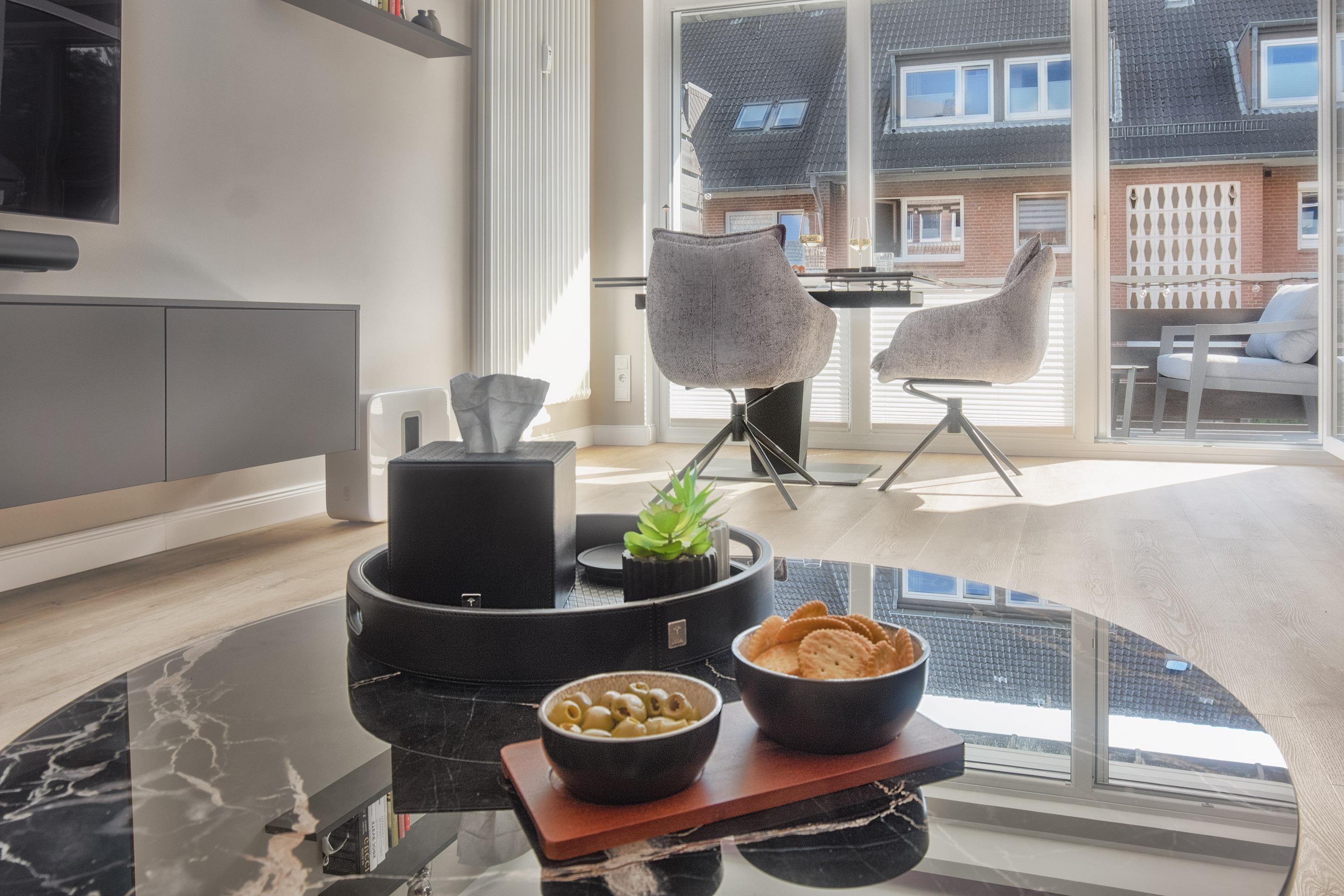 Die komplett neu sanierte Ferienwohnung Seewind 2, mit den liebevollen und erstklassigen Extras! Für maximal 2 Personen bietet diese geräumige Ferienunterkunft auf 58 m² Wohnfläche mit ca. 6 m² möbliertem Balkon im 1. Stock alles im Topzustand für Ihre beste Zeit des Jahres. Hier steht der stilvoll-moderne Komfort für Gäste im Vordergrund. Liebevoll designt und hochwertig mit maßgefertigten Einbaumöbeln eingerichtet. Der Wohnbereich mit elektrisch verstellbarem bequemen Ledersofa und topmoderner Unterhaltungstechnik bietet tolle Annehmlichkeiten. Die technische Ausstattung mit 4K-OLED-Smart-TV, WLAN und Streaming Möglichkeit, SONOS-Surroundsound-Anlage und einstellbarer Ambientebeleuchtung ist premium. Diverse Bücher und eine Spielesammlung sind ebenfalls vorhanden. Langweilig wird hier sicher niemand.