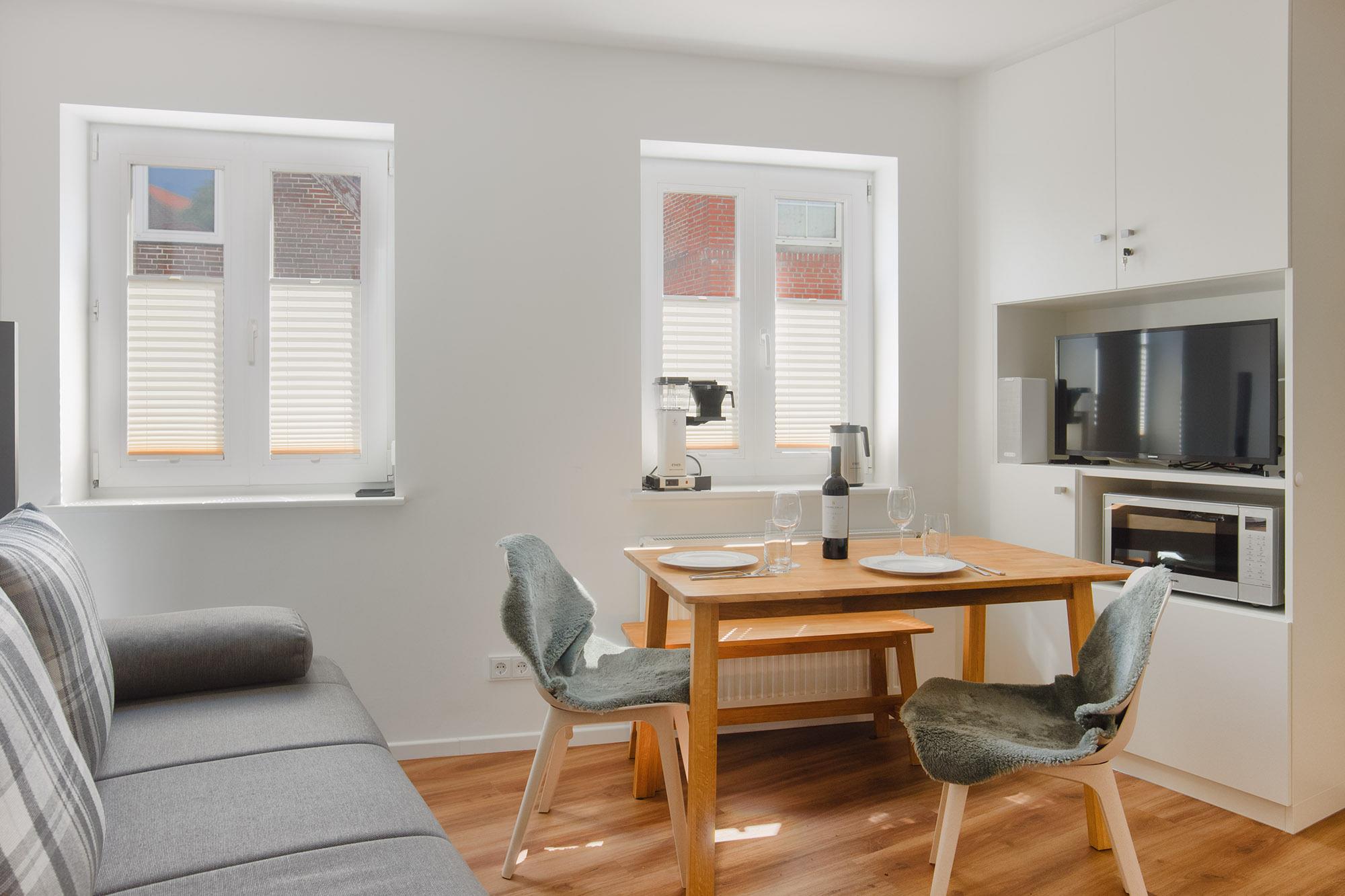 Selbstverständlich ist die Wohnung mit zwei Smart-TV, WLAN und Radio/Bluetooth ausgestattet.