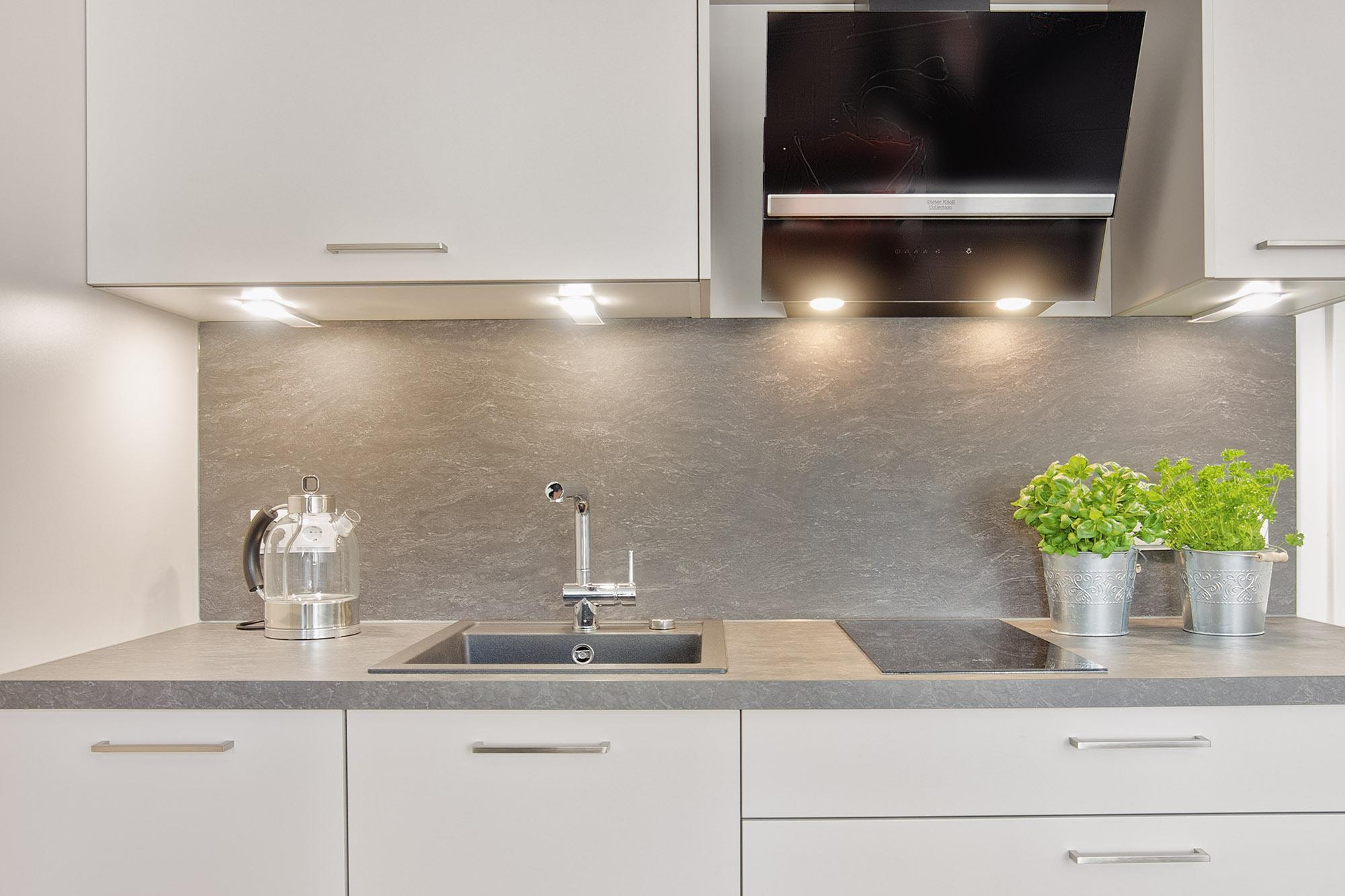 Das Konzept: Küche/Wohnen/Essen und Schlafen/Wohnen/Bad. Die beiden Räume – durch eine Tür getrennt – ermöglichen auch ein getrenntes Arbeiten im Homeoffice.