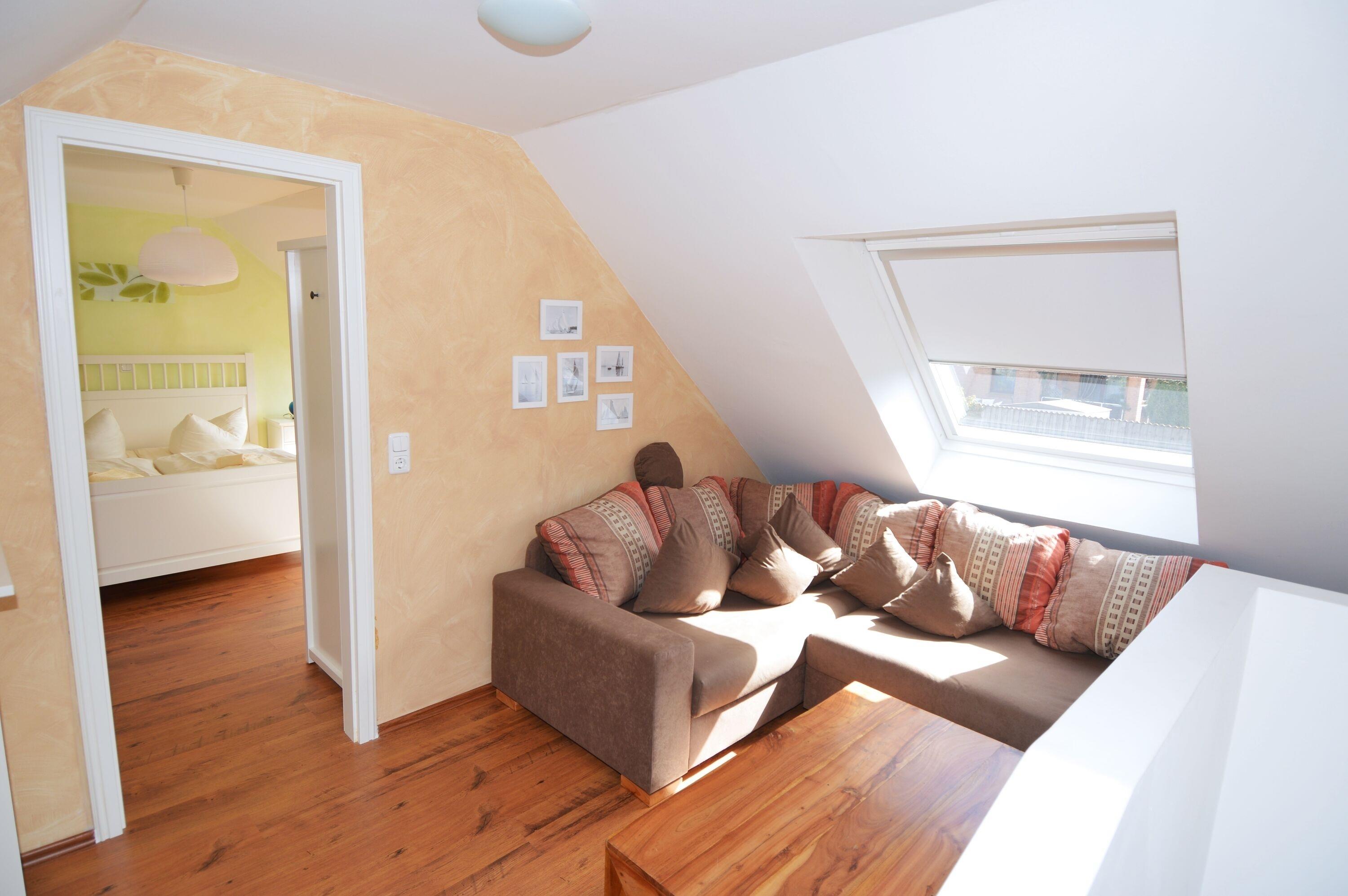 Dieses süße Ferienhaus glänzt mit seiner hochwertigen Ausstattung und bietet auf ca. 70qm Platz für bis zu 3 Personen. Im Obergeschoss befindet sich das lichtdurchflutete Schlafzimmer mit Doppelbett, Kleiderschrank und kleiner Couch. Im Erdgeschoss befindet sich das Wohnzimmer mit Couch, die bei Bedarf zur 3. Schlafgelegenheit ausgezogen werden kann.