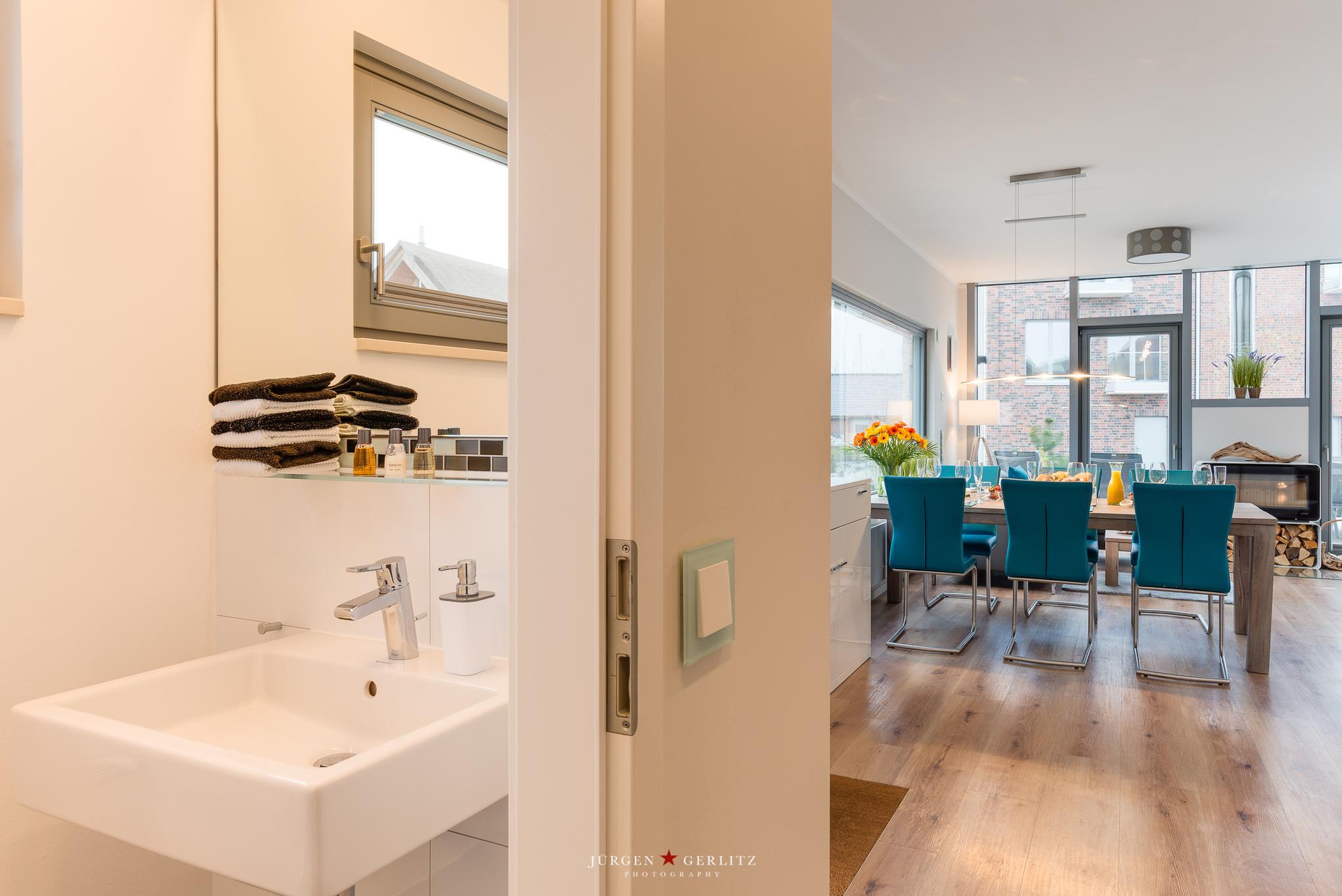 ? WC mit großem Waschbecken, als zweites Bad nutzbar, direkt
