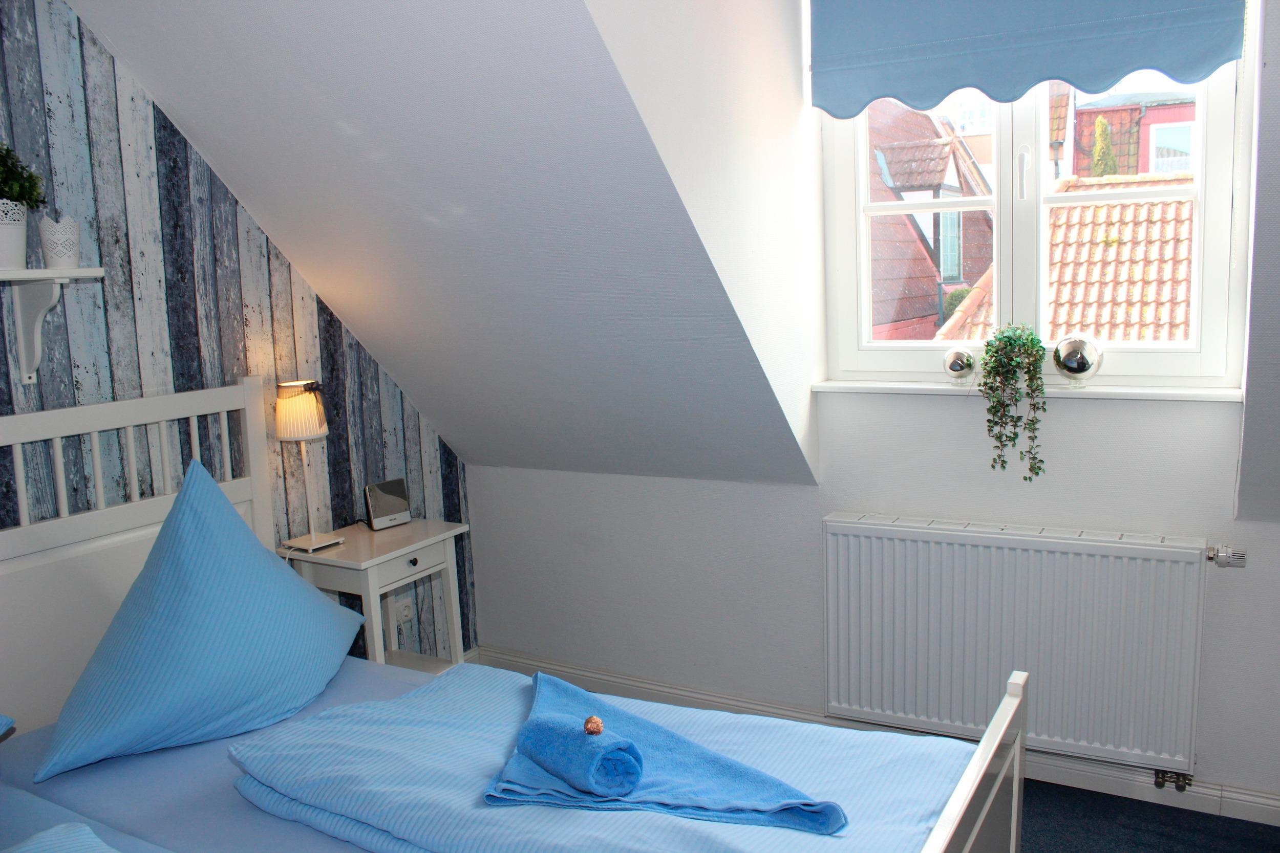 Neue, 5***** Ferienwohnung im Obergeschoß mit Hotelkomfort in Hafennähe. Moderne, gehobene Ausstattung im Landhausstil. Das großzügige Wohnzimmer (Fussboden Design-PVC in Holzoptikdie ) mit Flachbild -TV, DVD, Echtfeuer-Wandkamin gemütlicher Ledergarnitur sowie einer modernen, komplett ausgestatteten Küchenzeile mit Spülmaschine, Herd mit Backofen, Kühlschrank, div.Kleingeräten und separ. Essecke. 1. Schlafzimmer (Teppichboden)mit Doppelbett u. Flachbild-TV; 2. Schlafzimmer (Teppichboden) mit 2 Einzelbetten. Bad mit Dusche/WC. Balkon mit Gartenmöbeln. Bettwäsche, Handtücher und Endreinigung sind im Mietpreis enthalten. Haustiere nicht erlaubt. Nichtraucher erwünscht. Eigene Sonnenterrasse auf dem Grundstück.
