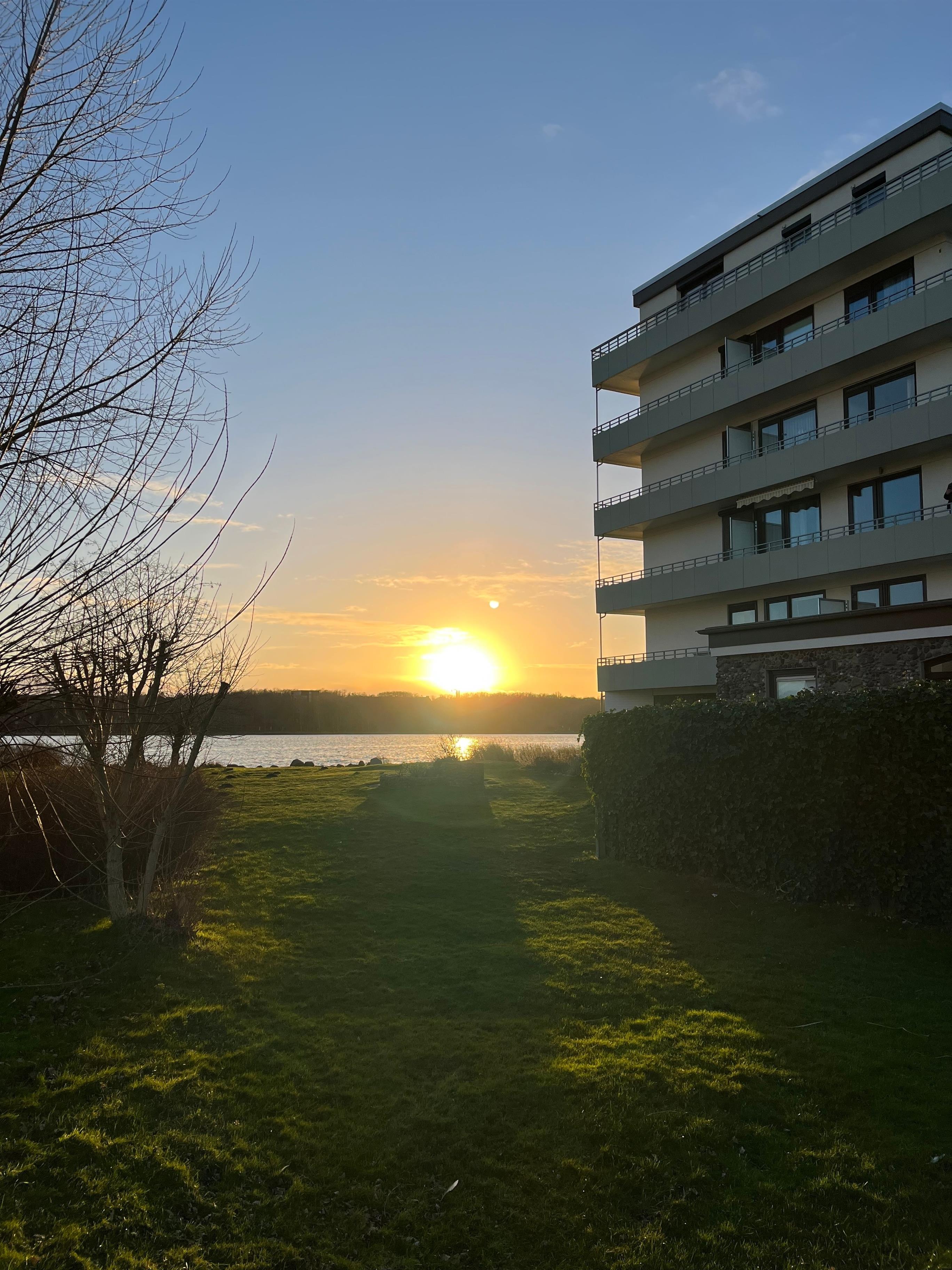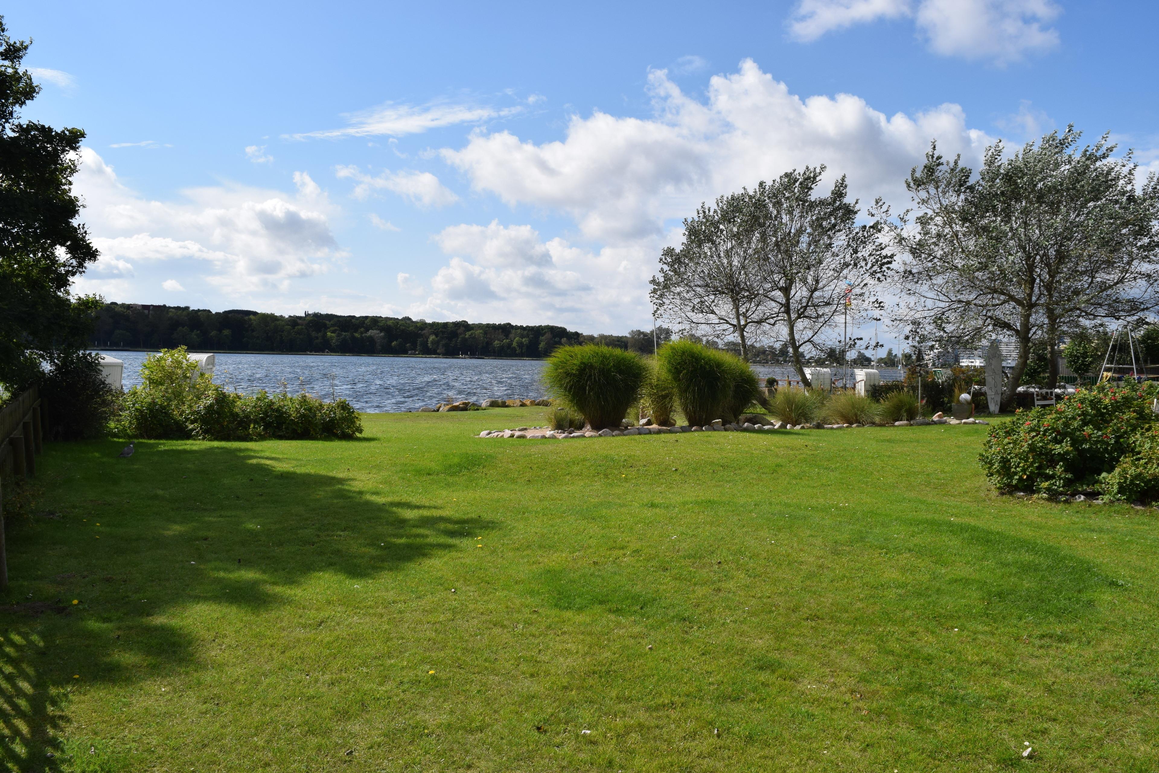 Die gemeinschaftliche Gartennutzung bietet eine Liegewiese, einen kleinen Sandkasten und direkten Zugang zum Binnensee – ideal für Entspannung oder kleine Abenteuer. Ein nahegelegener Erlebnis-Spielplatz am Binnensee sorgt für leuchtende Kinderaugen.