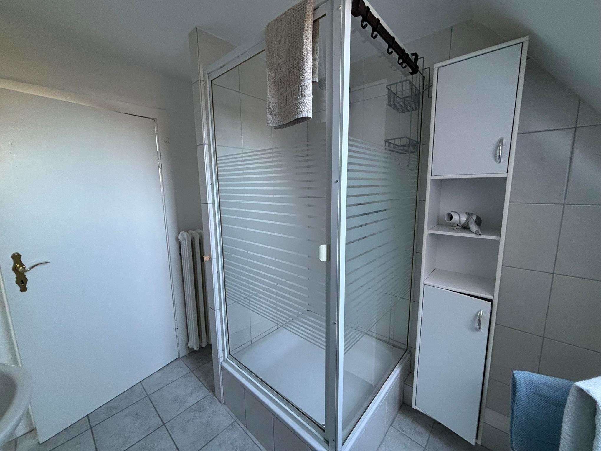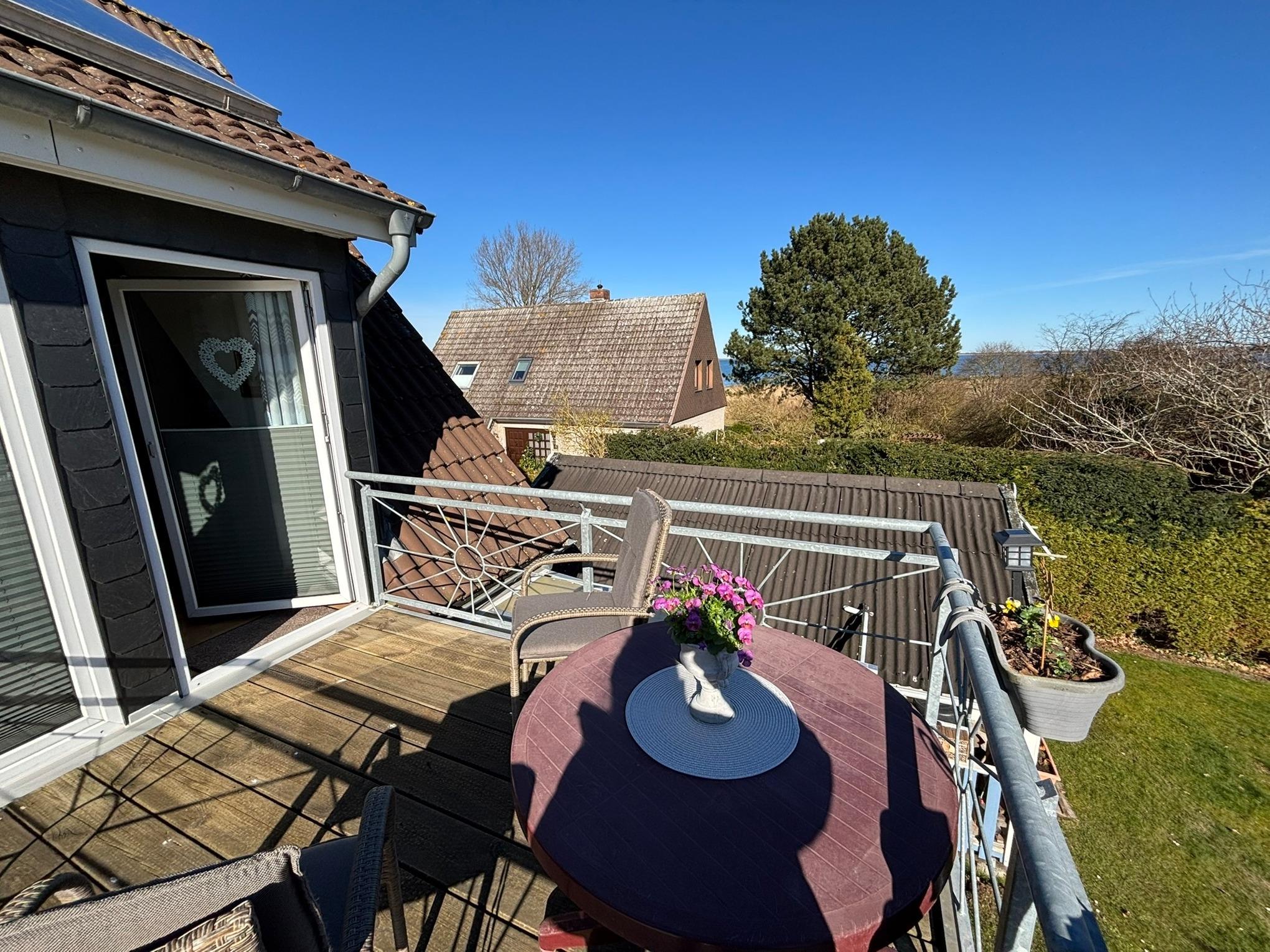 Ferienwohnung für Nichtraucher, gemülich ausgestattete Ferienwohnung im Obergeschoß, 45qm, 1 Schlafraum mit Einzelbetten, 1 Wohnraum mit Schlafcouch für 1 Kind bis 12 Jahre, TV, Stereoanlage, Eßecke, Balkon mit Fernblick auf die Ostsee, sep.Küchenzeile mit Backofen, Dusche, WC, Parkplatz vor Ort, Haustiere nicht erlaubt, Bettwäsche, Handtücher, (Erstausstattung ), Endreinigung inkl.