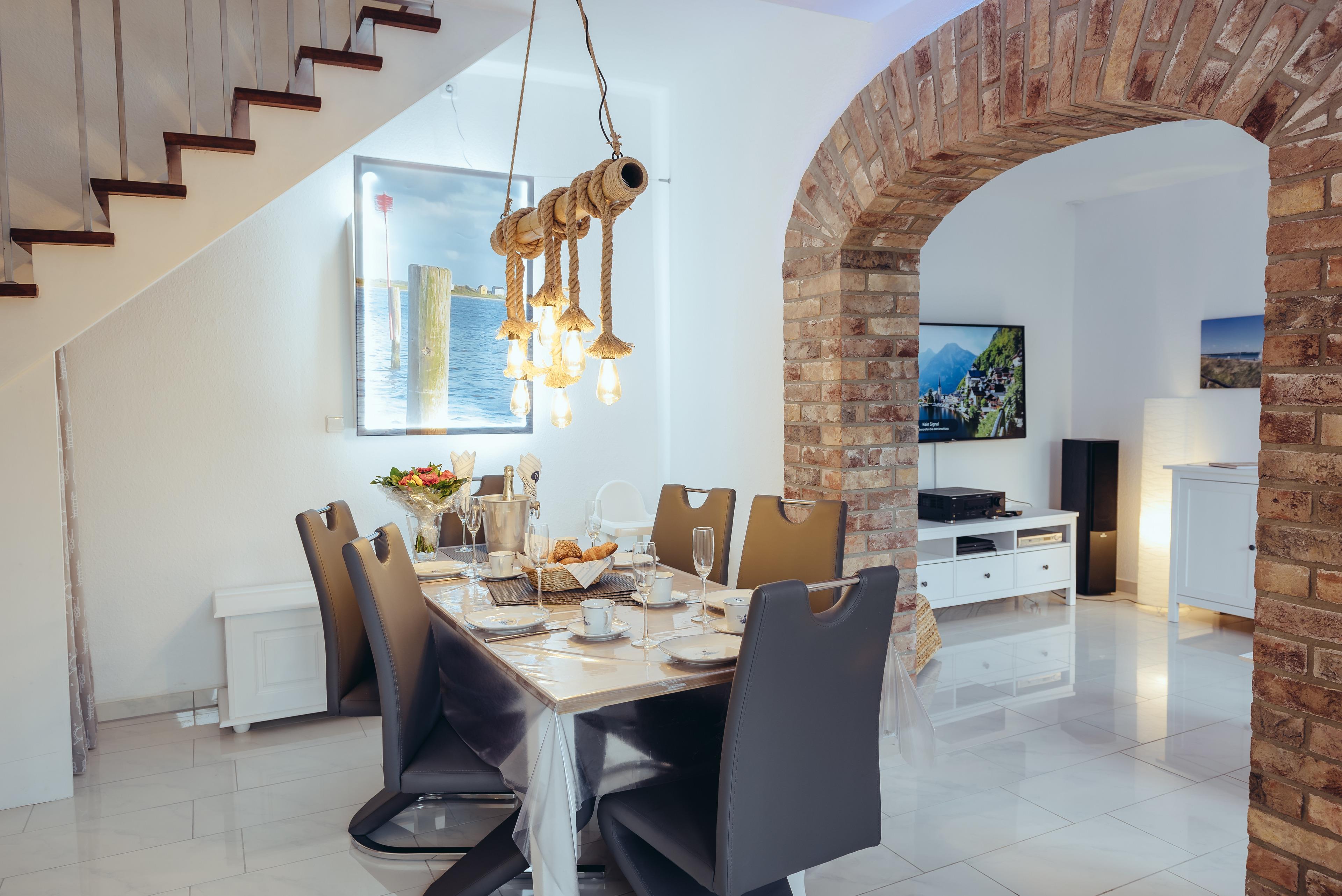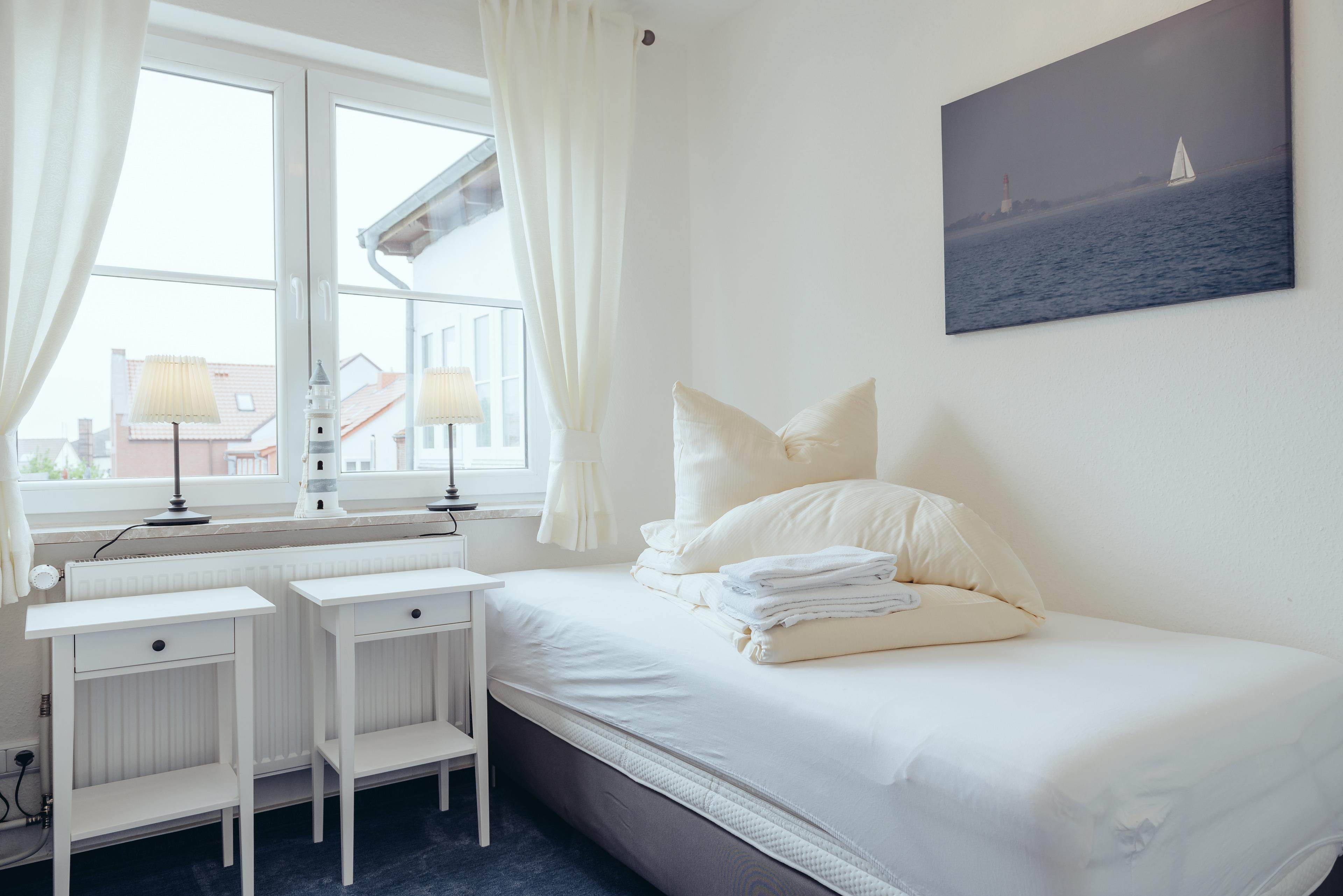 Die moderne und wohnliche Gesamtausstattung bietet alles, was man für einen Urlaub braucht. Die weitere Besonderheit an dieser Ferienwohnung ist die Nähe zum historischen Stadtkern oder zum Hafen. Nur 150 Schritte und Sie können im Kommunalhafen ein zünftiges Essen mit einem tollen Ausblick genießen. Zahlreiche Gastronomiebetriebe, Bars und Geschäfte laden zum Bummeln und Shoppen ein. Auch den Strand und die Seebrücke erreichen Sie innerhalb von nur zehn Gehminuten bequem zu Fuß. Ebenfalls über einen Spaziergang erreichen Sie das Aktiv Hus. Dort können Ihre Kinder in der Schatzinsel Indoor nach Lust und Laune toben. Sie können in der Ostsee-Lounge die Seele baumeln lassen, in der Sportarena die Kletterwand erklimmen oder lassen sich von der Ladenzeile im Erdgeschoss verführen. Eine kleine Garage ist auf dem Nachbargrundstück Thulboden 58 für Sie vorhanden.