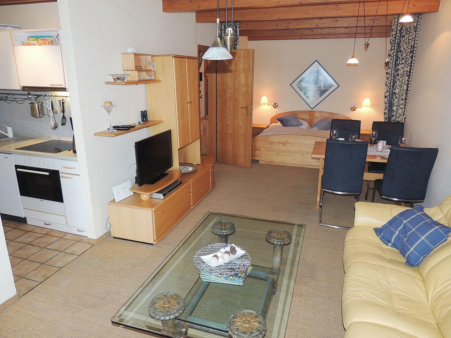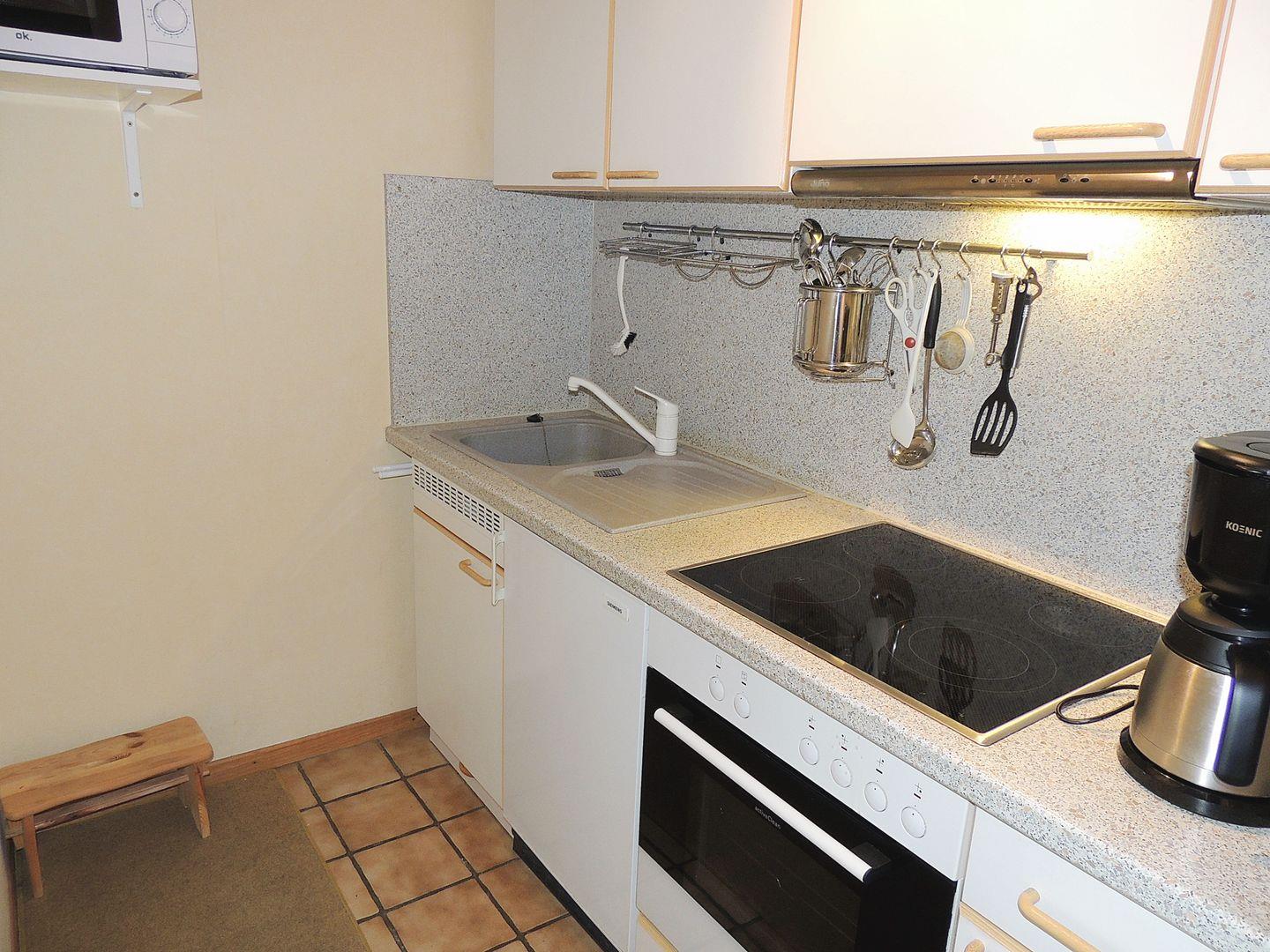 Die Küche ist für 4 Personen voll ausgestattet und bietet Ihnen einen Backofen mit Cerankochfeld, Kühlschrank mit Gefrierfach und die üblichen Utensilien wie Toaster und Wasserkocher.
