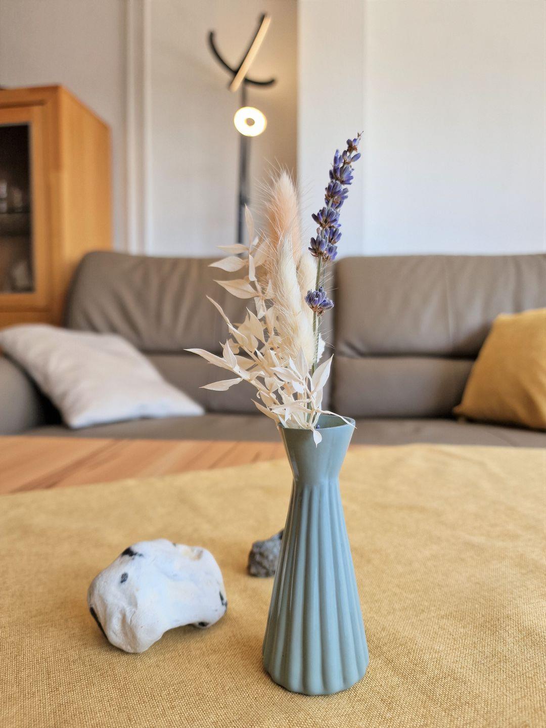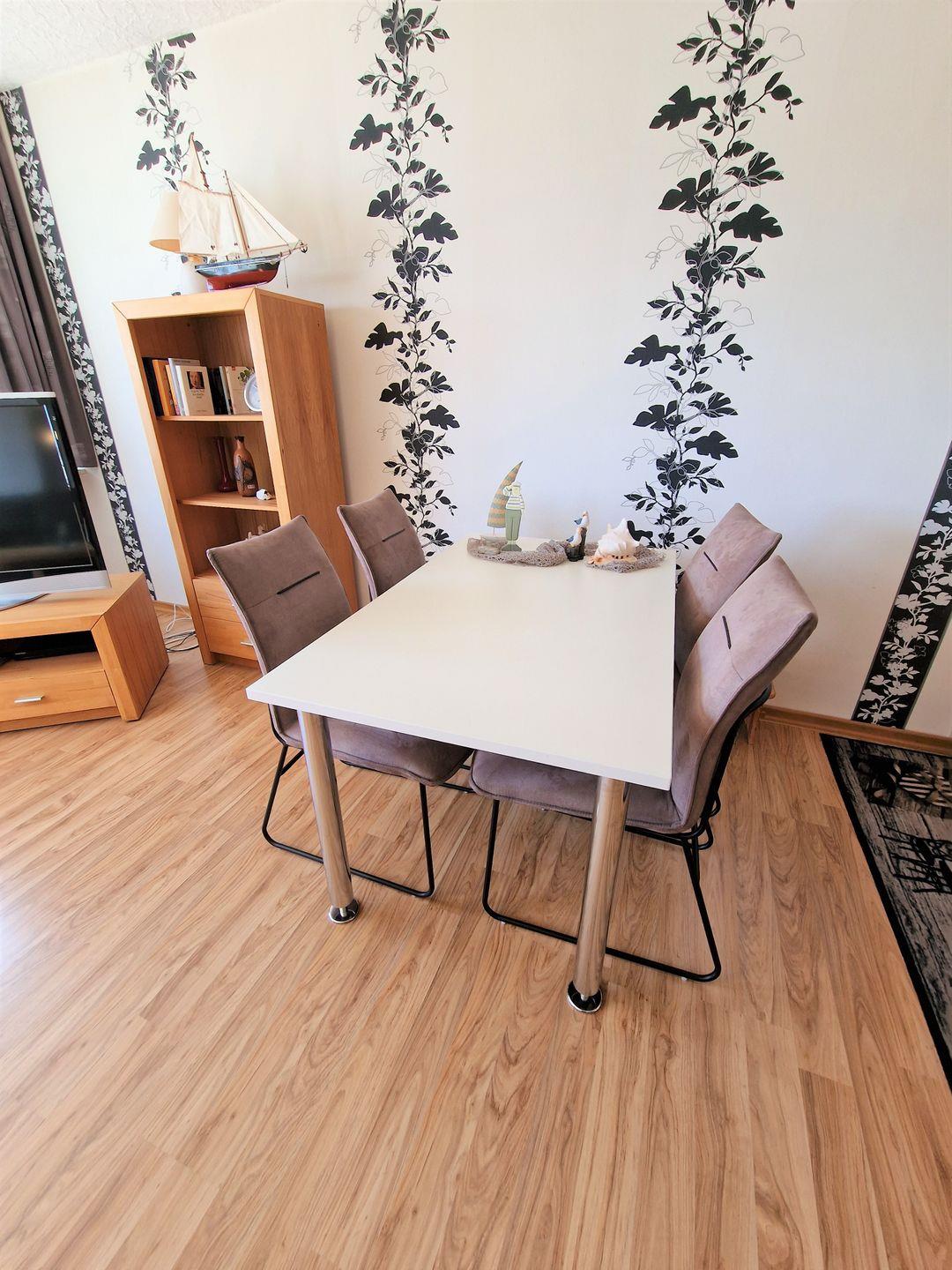 Diese Ferienwohnung besticht durch das großzügige Wohnzimmer mit langer Fensterfront und ist geeignet für max. 3 Personen (Schlafcouch).