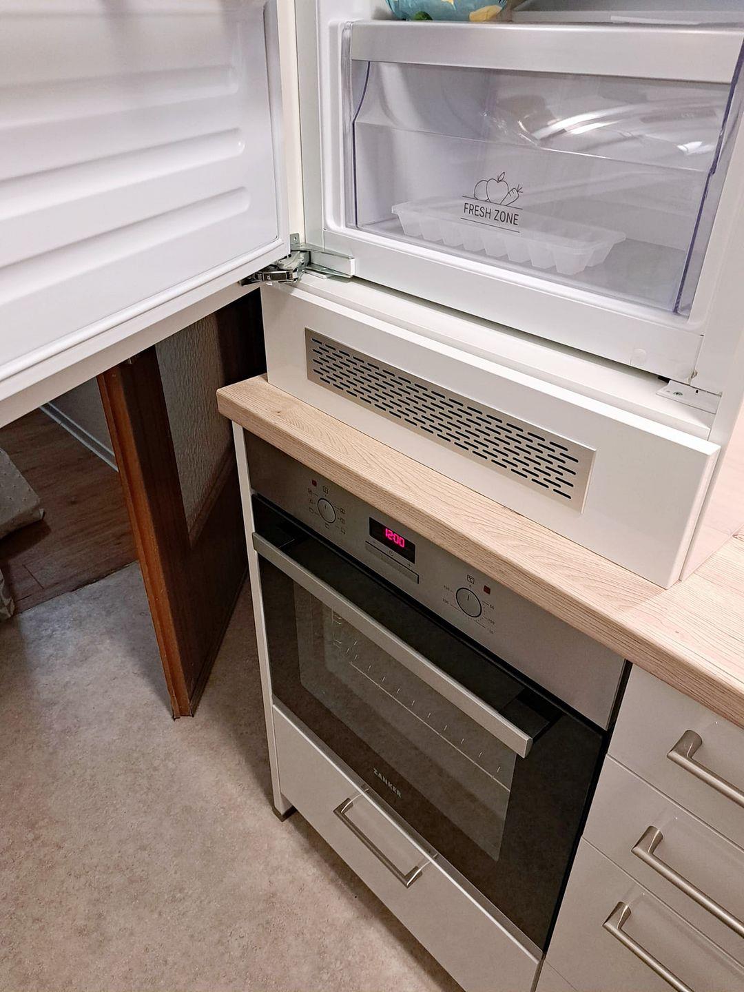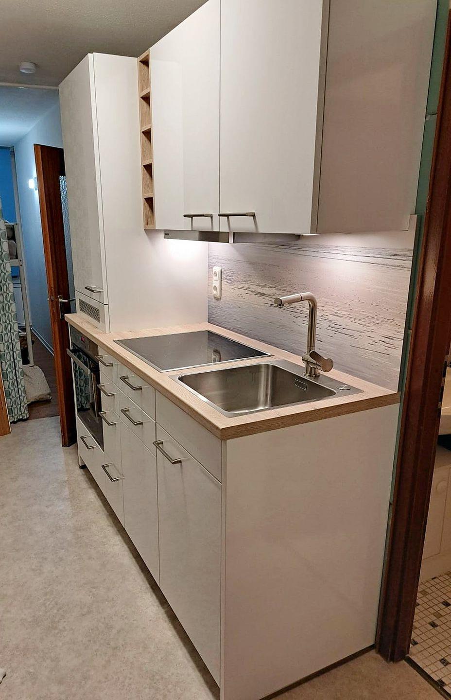Die neue Küche ist im April 2023 eingebaut worden und verfügt über einen Backofen, eine Spülmaschine, Kühlschrank und Cerankochfeld sowie alle üblichen Utensilien.