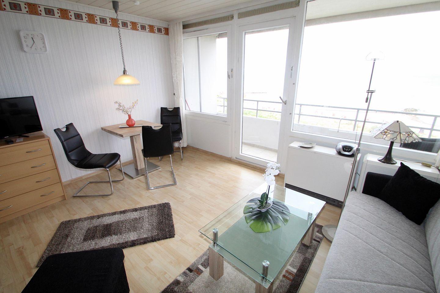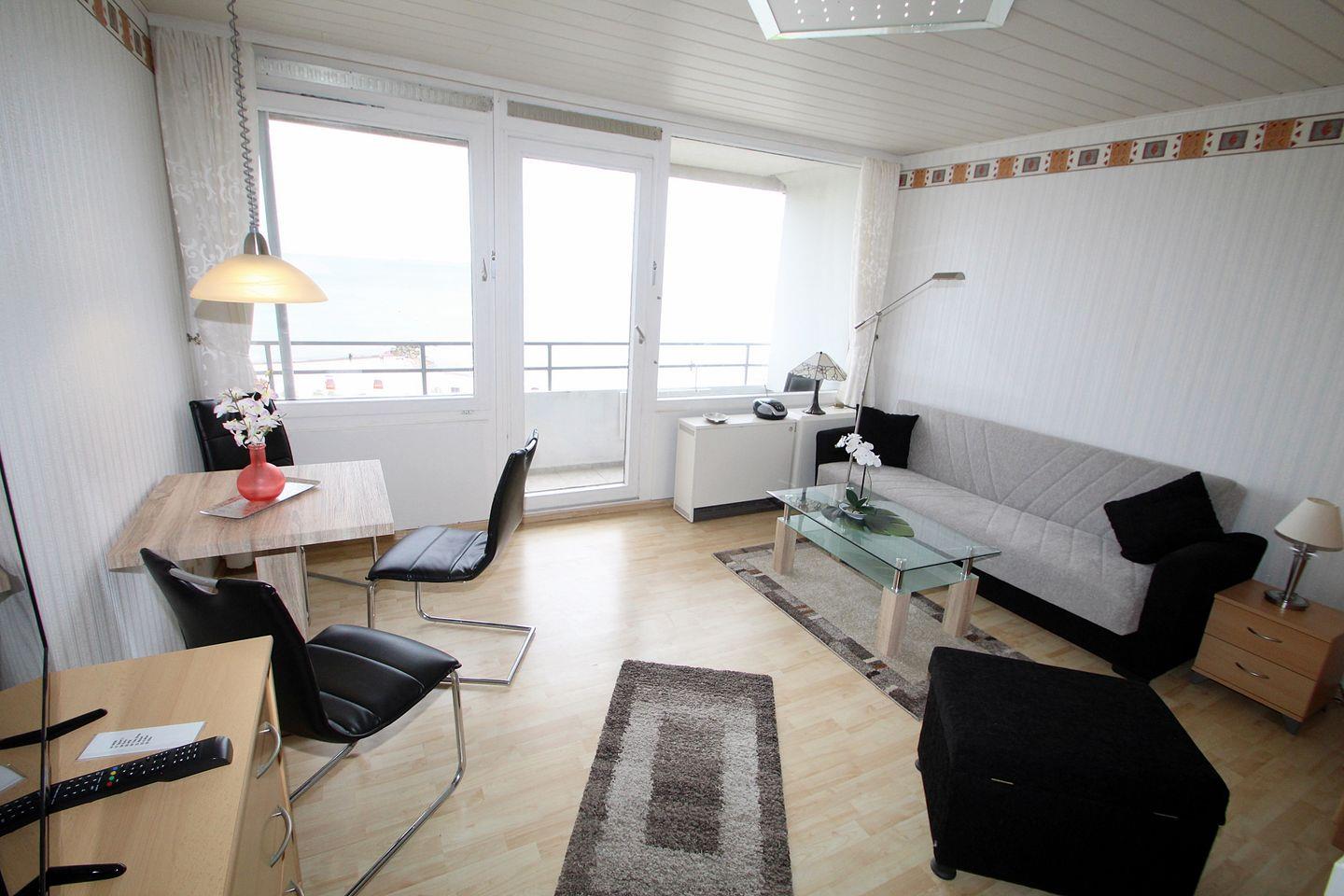 Diese Wohnung besticht durch Ihren tollen Ostseeblick, den Sie durch den Wohnbereich und der 2er Couchgarnitur wunderbar genießen können.