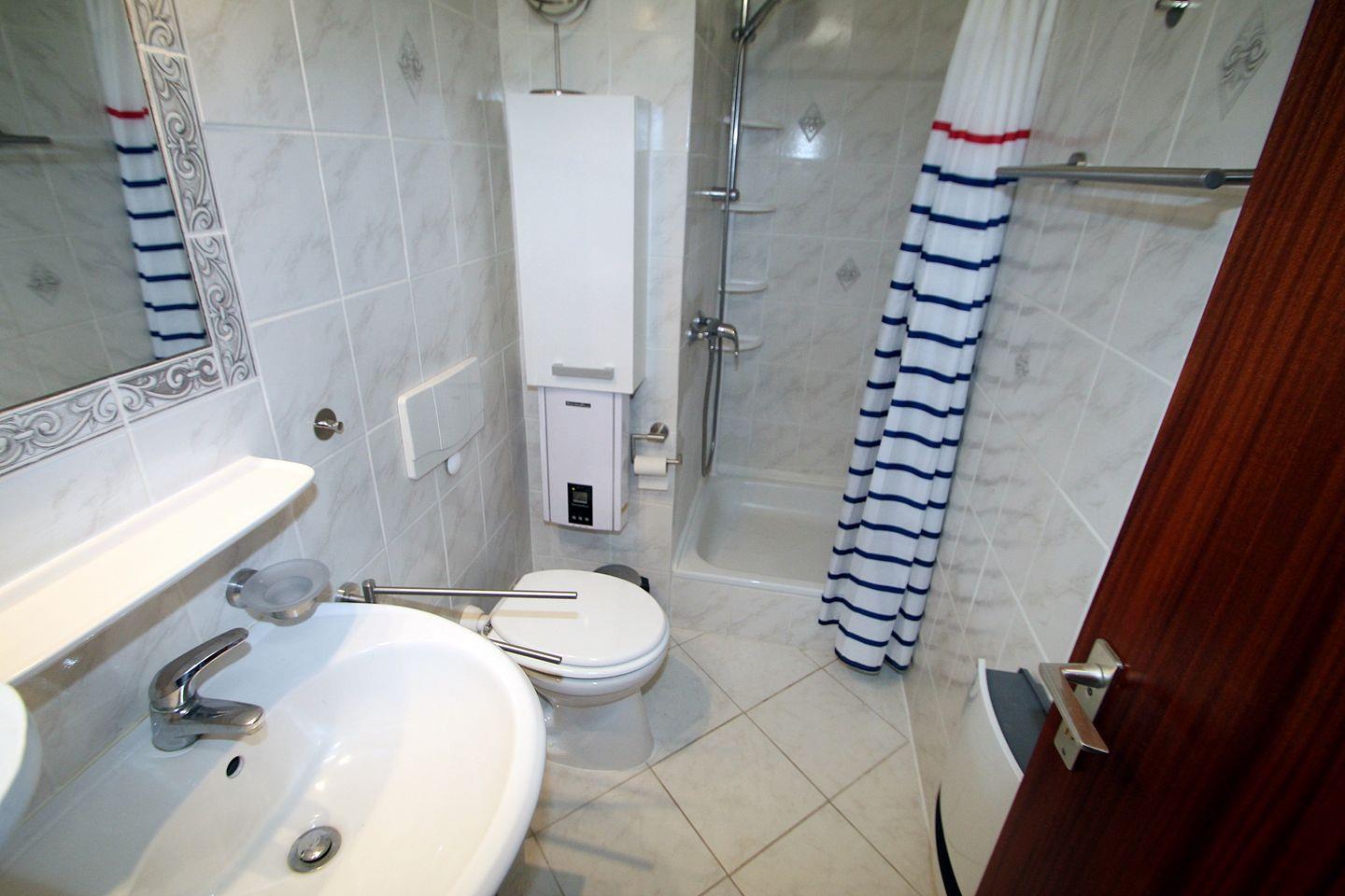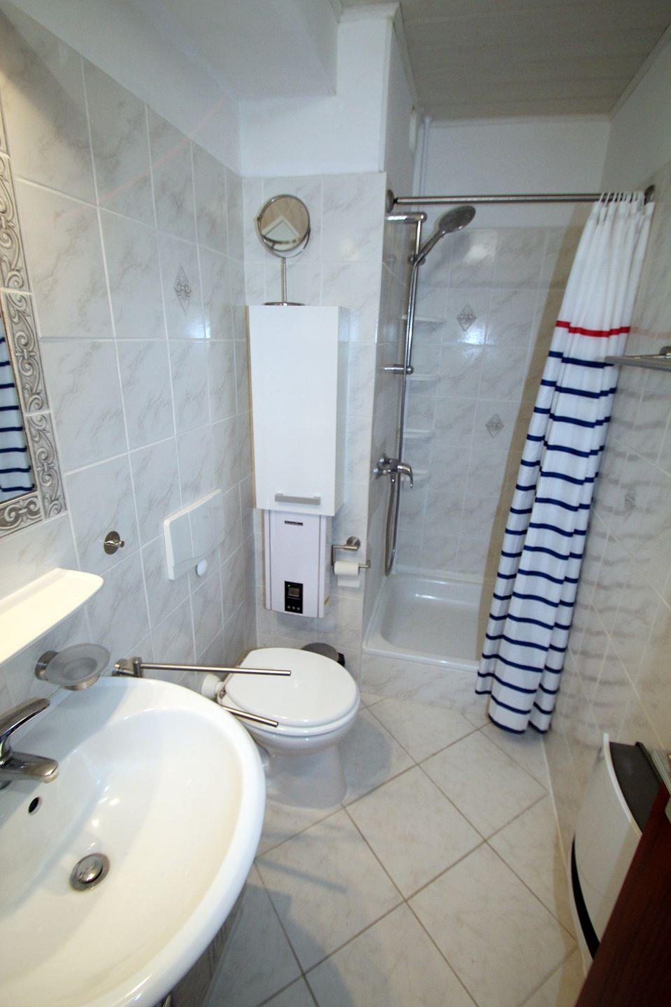 Der Sanitärbereich verfügt über eine Dusche sowie WC.