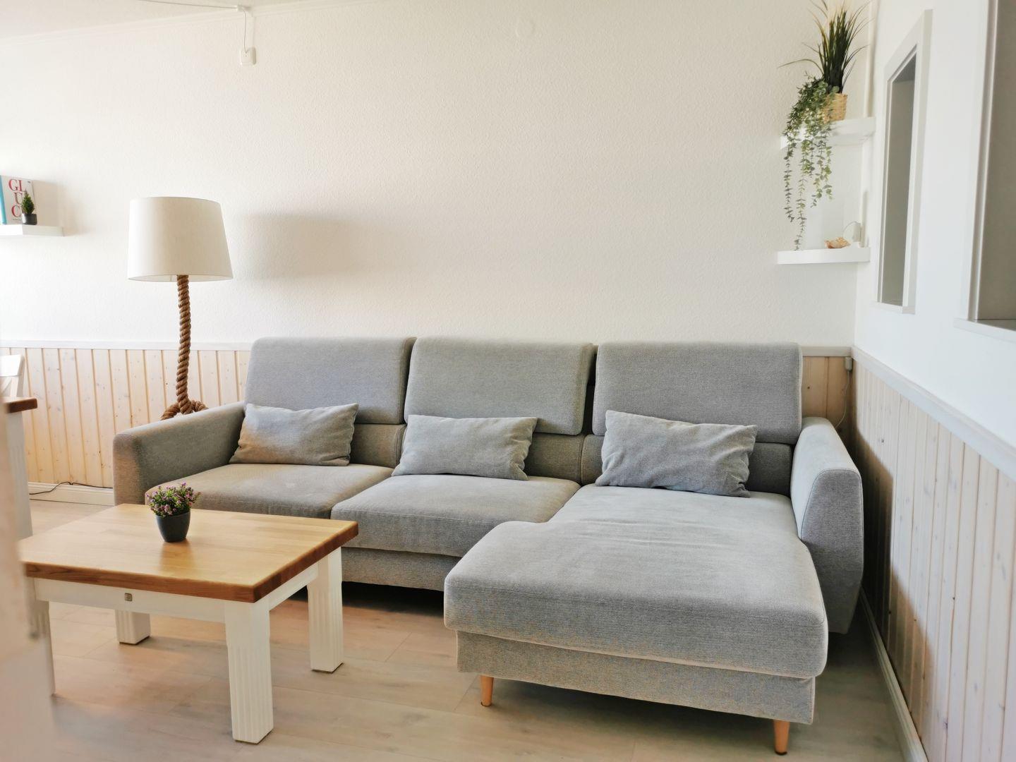 Im Wohnbereich stehen gemütliche Sitzgelegenheiten in Form einer Eck-Couch sowie eines großzügigen Essbereiches für max. 4 Personen zur Verfügung. Flatscreen-TV sowie WLAN stehen als technische Komponenten zur Verfügung.