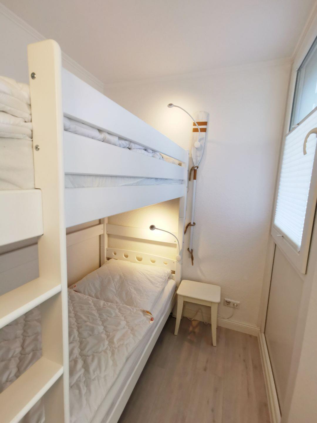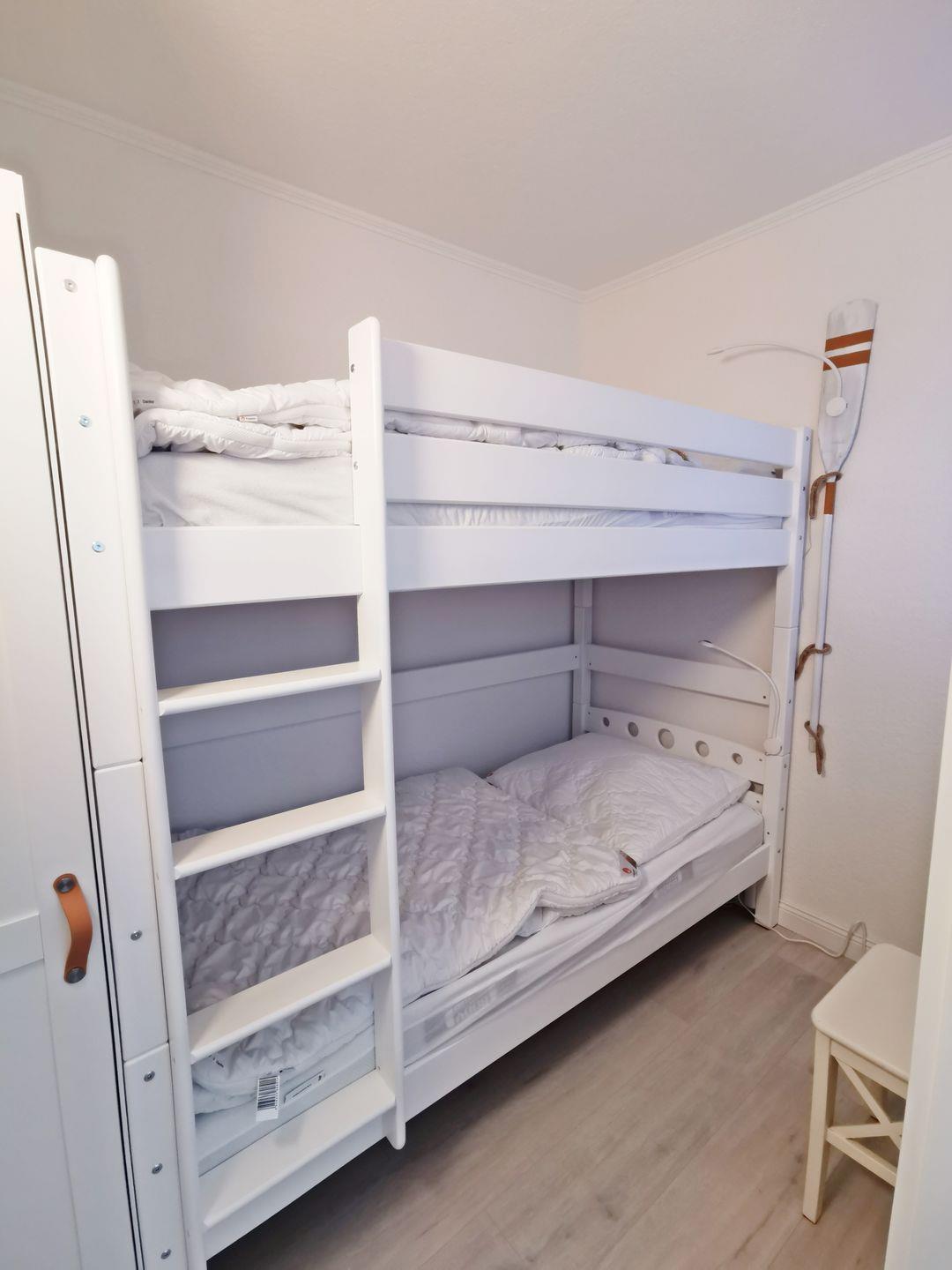 Im separaten. Kinderzimmer befindet sich ein stabiles Etagenbett sowie auch ein Fenster mit Verdunklungsmöglichkeit vorhanden sind. Durch einen weiteren Einbauschrank wurde weiterer Stauraum ermöglicht.