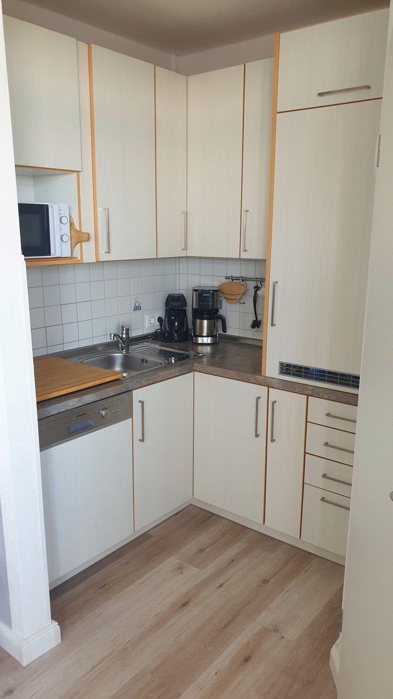 Küche: Die offene Küche ist ausgestattet mit einem Cerankochfeld, Spülmaschine, Mikrowelle, Kühlschrank mit Gefrierfach und Kaffeemaschine. Alle notwendigen Kochutensilien, Besteck und Geschirr sind selbstverständlich vorhanden.