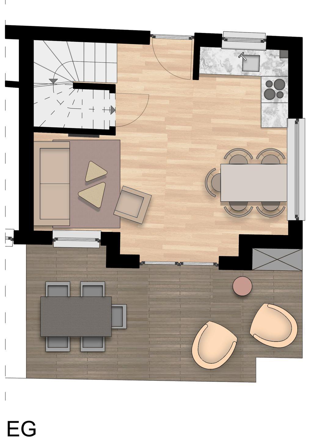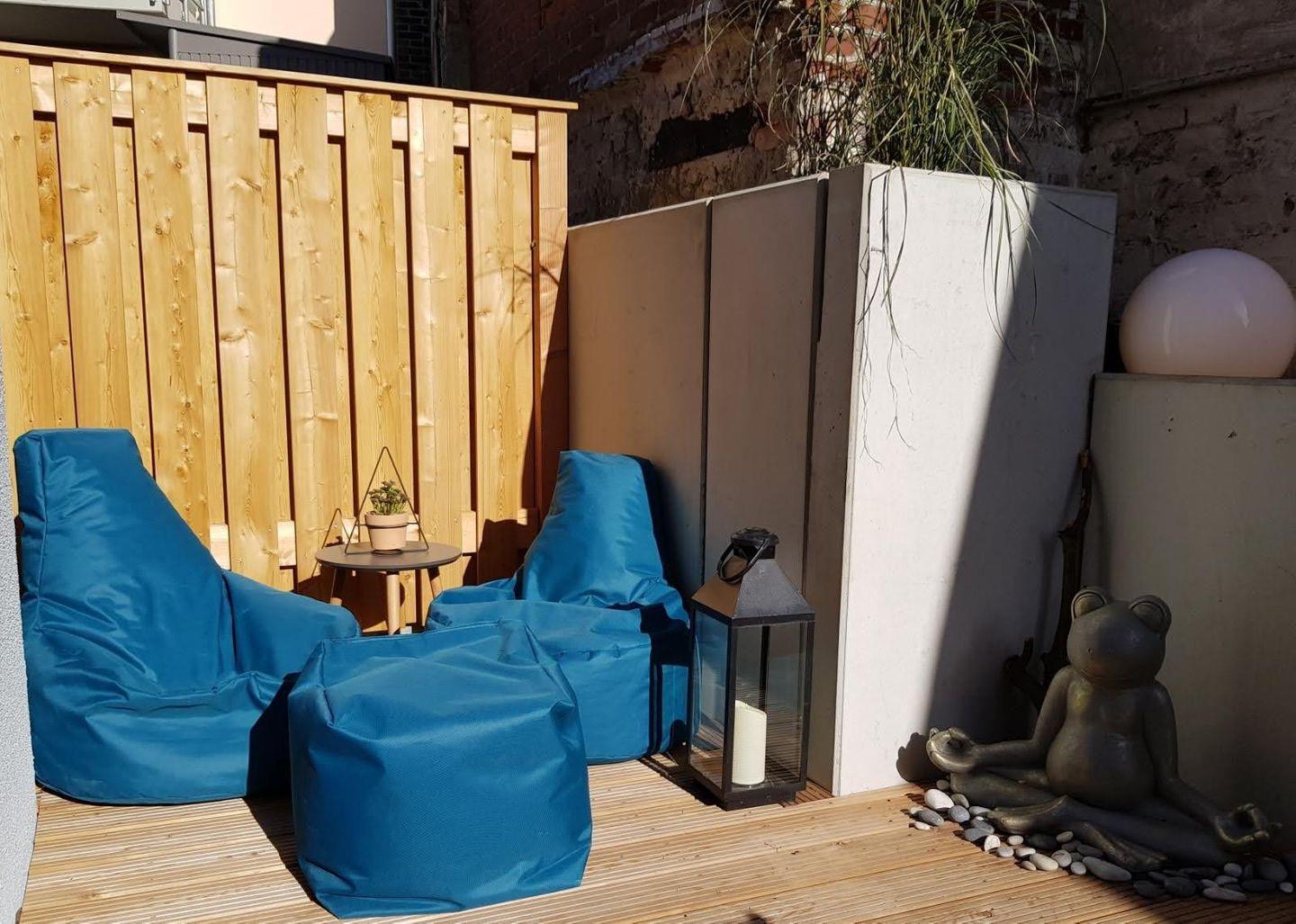 Die Sonnenterrasse ist komplett eingewachsen und bietet eine ruhige Hinterhofatmosphäre - perfekt, um einen Tag entspannt ausklingen zu lassen. Gartenmöbel und eine Chill-out-Ecke erwarten Sie.