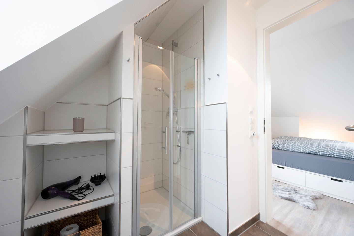 Das Haus im skandinavischen Stil ist sehr hochwertig und modern eingerichtet. Die zwei Schlafzimmer befinden sich in den oberen beiden Etagen - eines hat ein Doppelbett, das andere ein Doppelbett sowie ein Einzelbett. Jedes Schlafzimmer hat sein eigenes Badezimmer. Ein Babybett sowie ein Hochstuhl stehen Ihnen kostenfrei zur Verfügung.